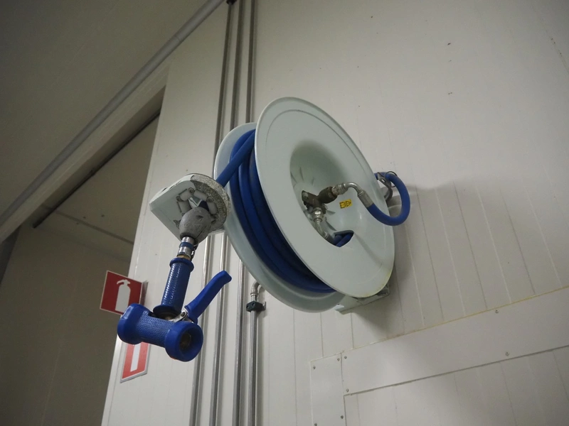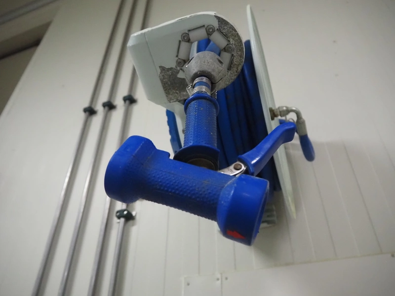 Nederman hose reel with pistol, dimensions: 730 mm x 300 mm x 550 mm.