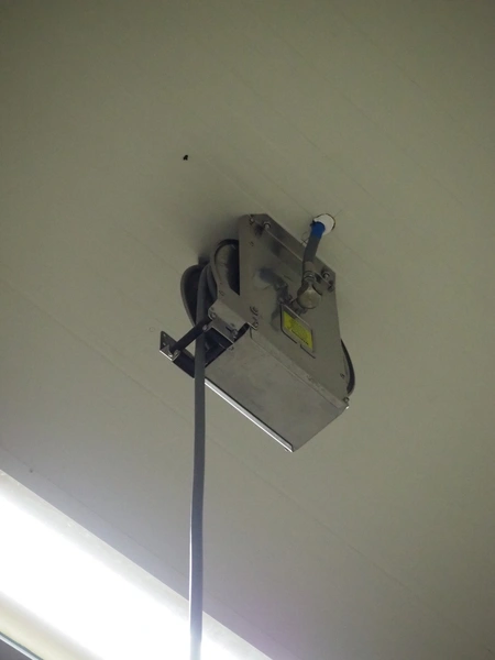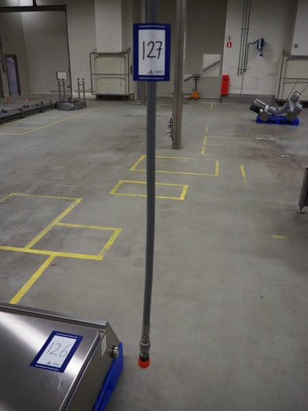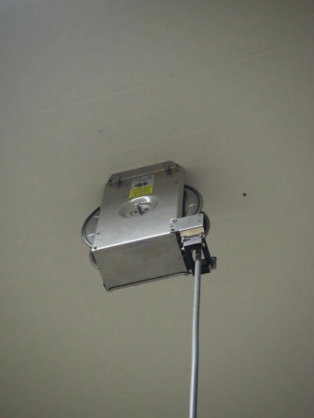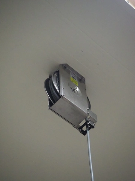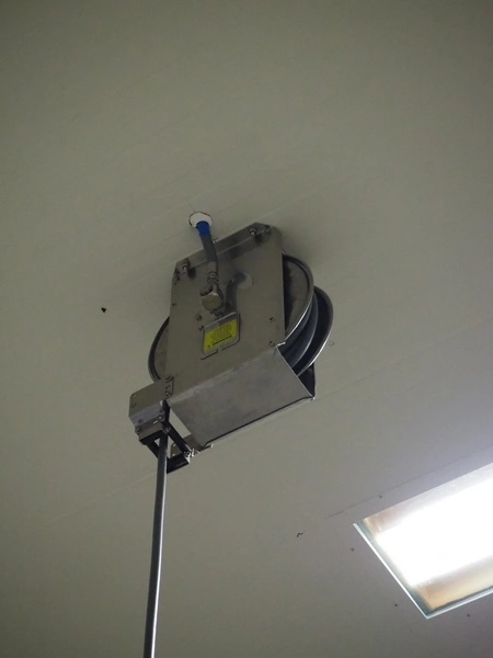 S/s hose reel with hose, dimensions: 430 mm x 230 mm x 420 mm.
