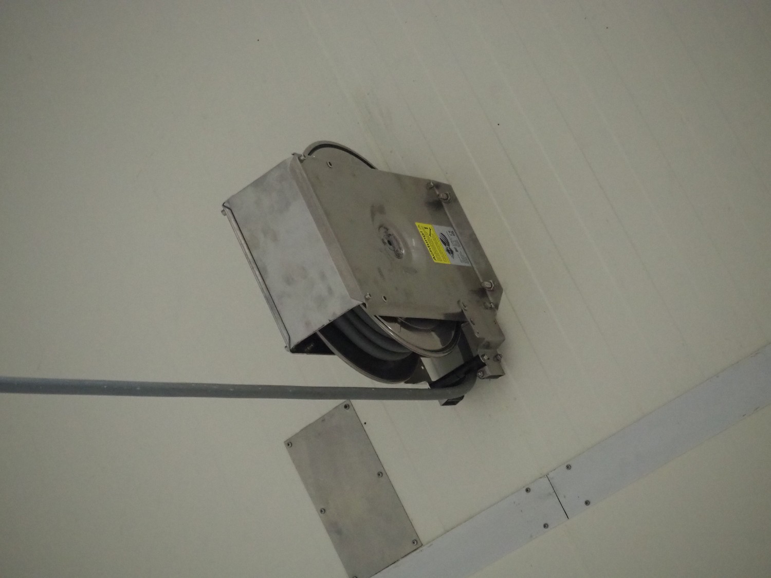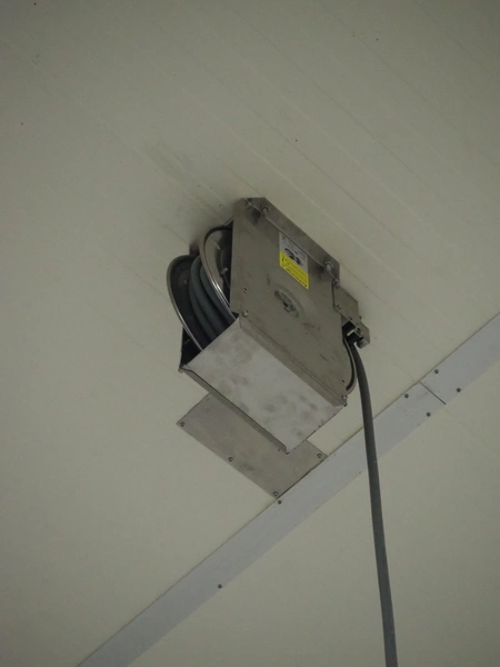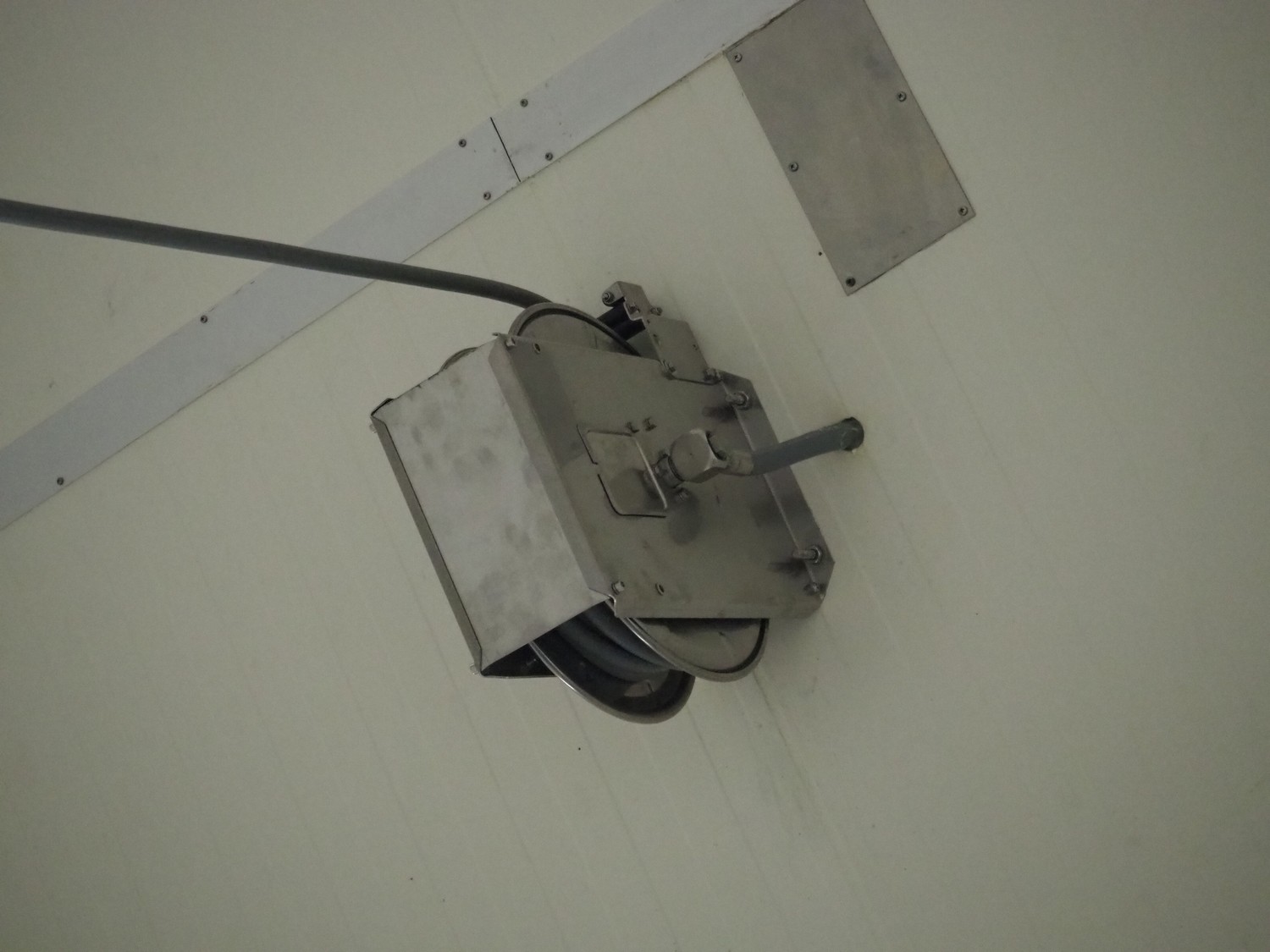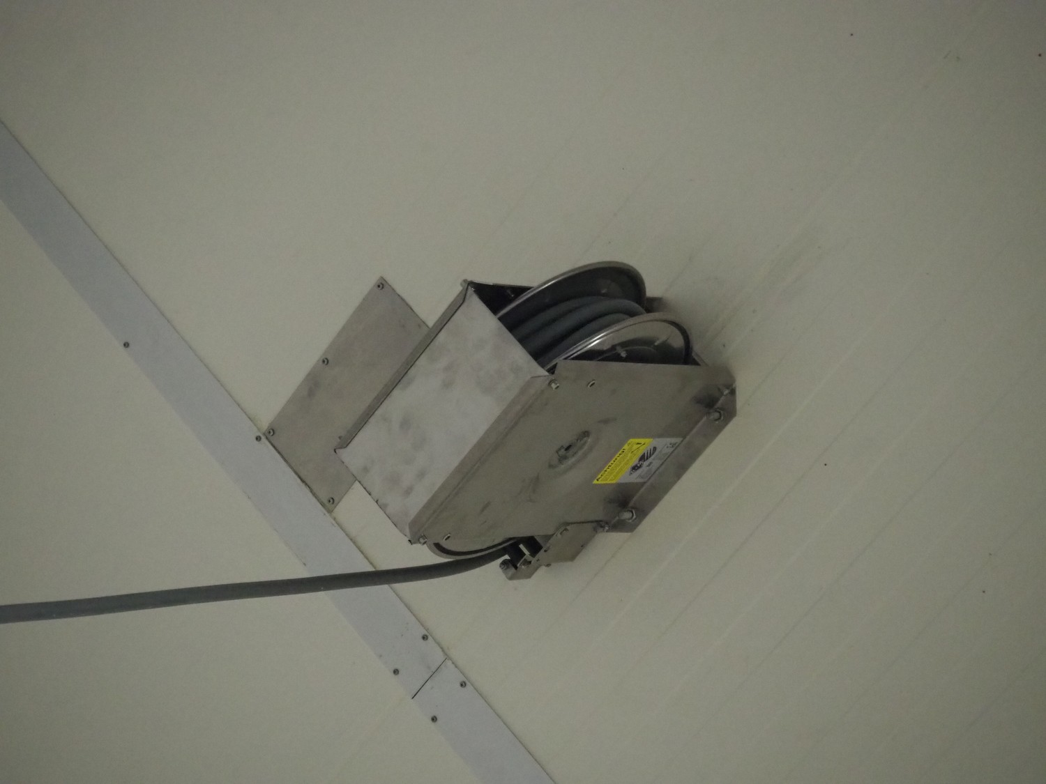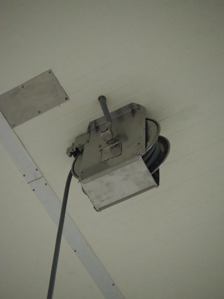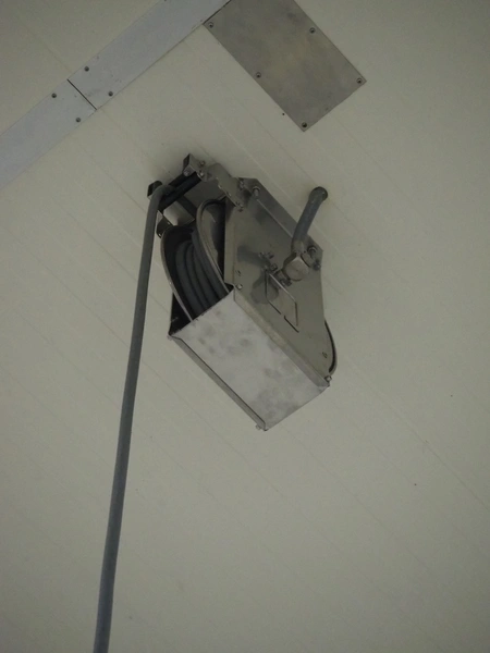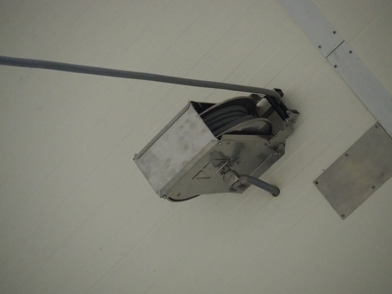 S/s hose reel with hose, dimensions: 430 mm x 230 mm x 420 mm.