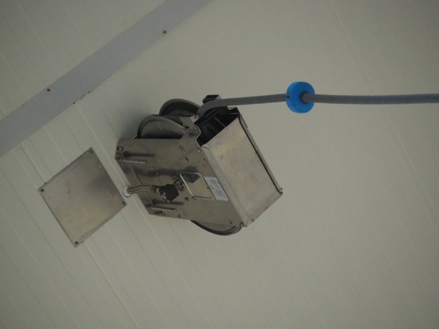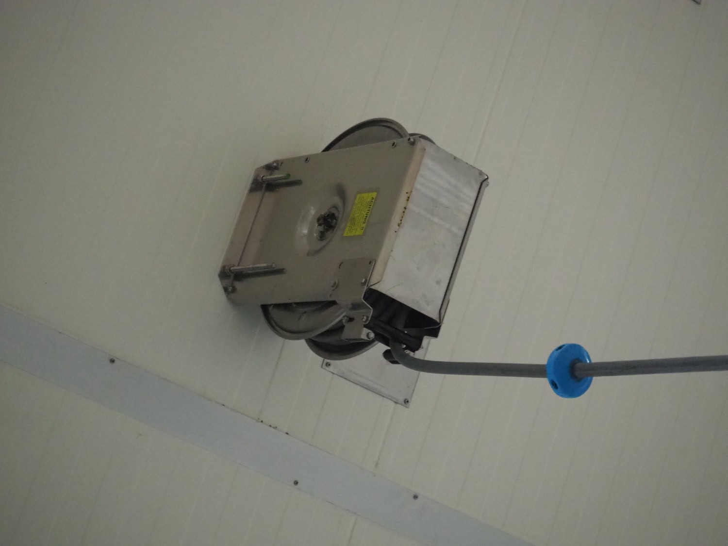 S/s hose reel with hose, dimensions: 430 mm x 230 mm x 420 mm.