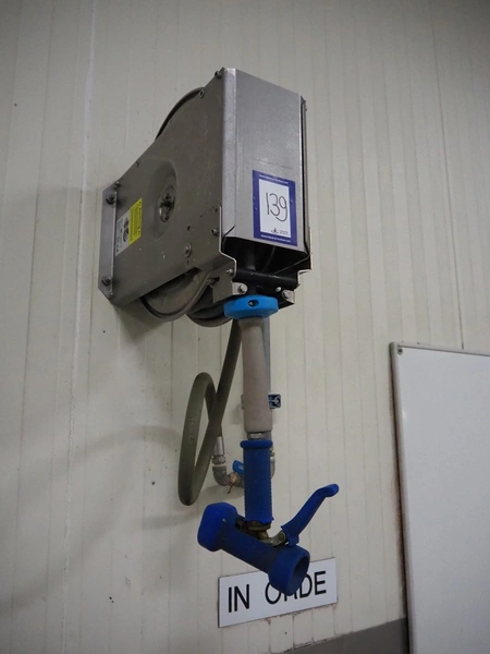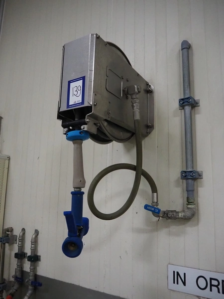 R+M s/s hose reel with hose and pistol, type: ST14/10e, serial number: 162661, year of construction: 09/2019, dimensions: 430 mm x 230 mm x 420 mm.