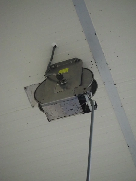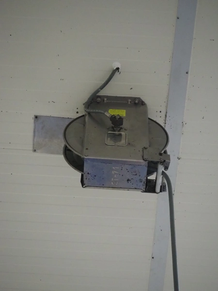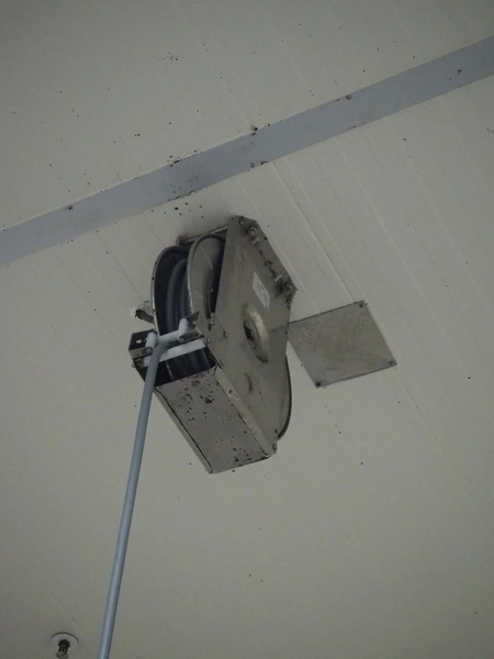 S/s hose reel with hose, dimensions: 430 mm x 230 mm x 420 mm.