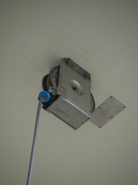 S/s hose reel with hose, dimensions: 430 mm x 230 mm x 420 mm.