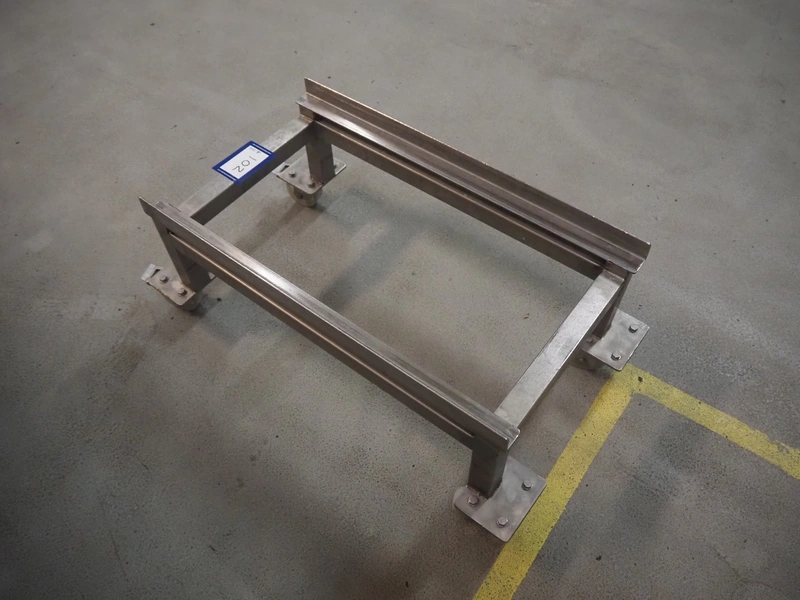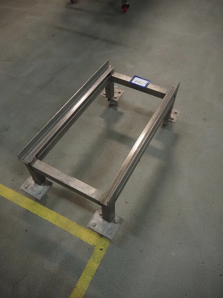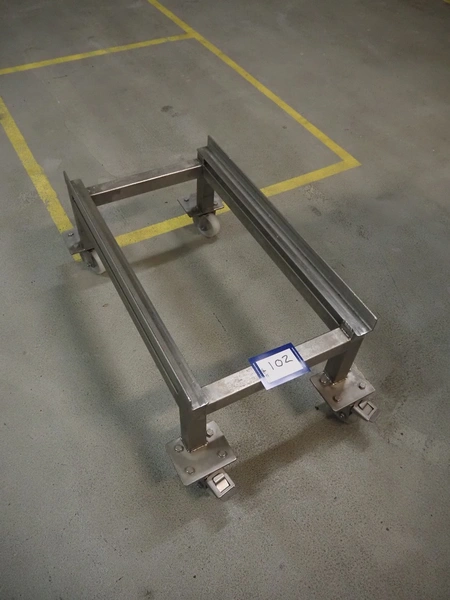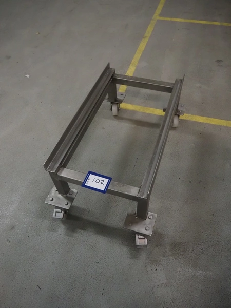 S/s trolley for crates, clearance: 730 mm x 400 mm, total dimensions: 830 mm x 490 mm x 340 mm.