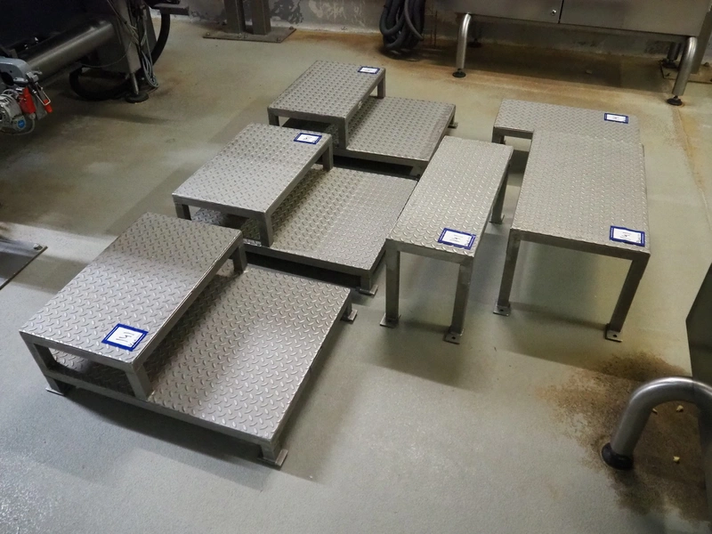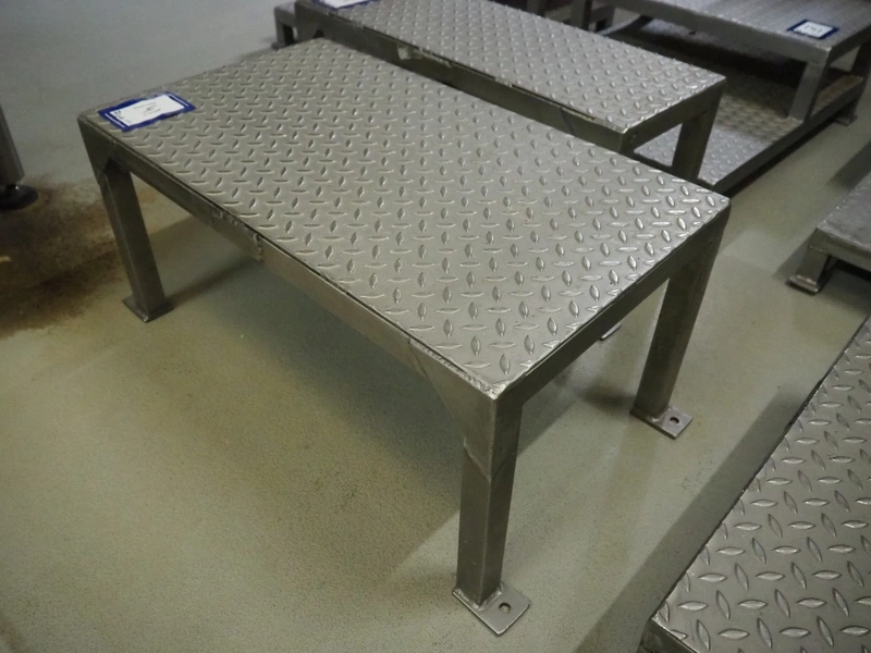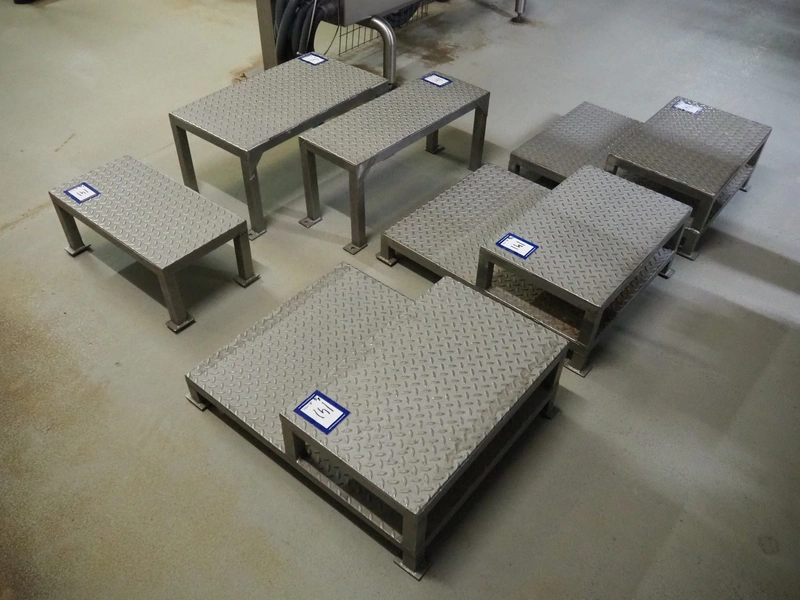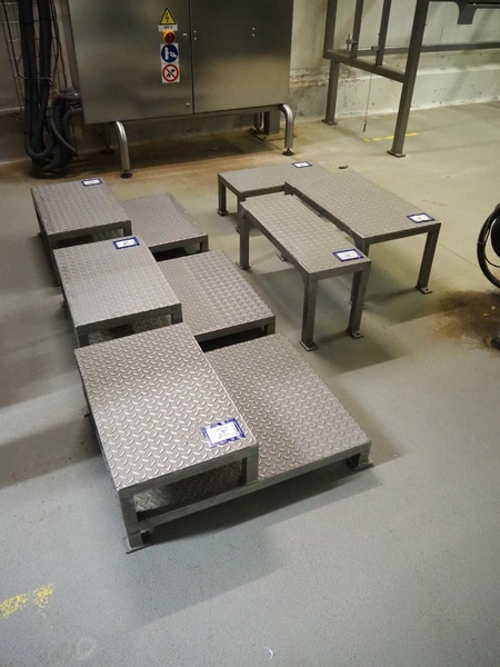 6 s/s platforms, dimensions: (3x) 750 mm x 600 mm x 260 mm, (1x) 700 mm x 400 mm x 330 mm, (1x) 700 mm x 260 mm x 340 mm, (1x) 600 mm x 300 mm x 220 mm.