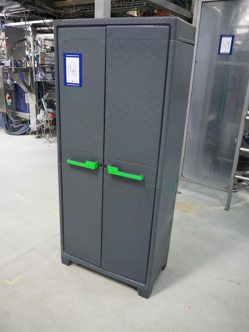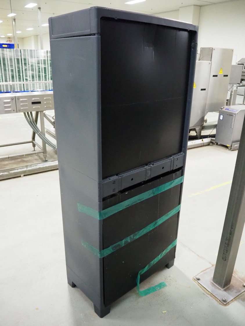 Plastic cabinet, 5 floors, dimensions: 780 mm x 430 mm x 1810 mm.