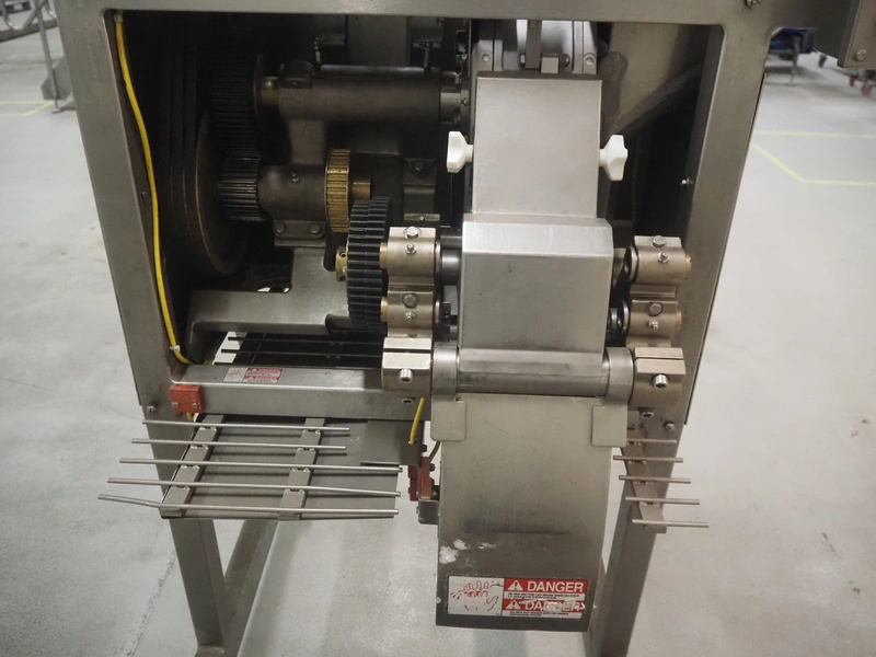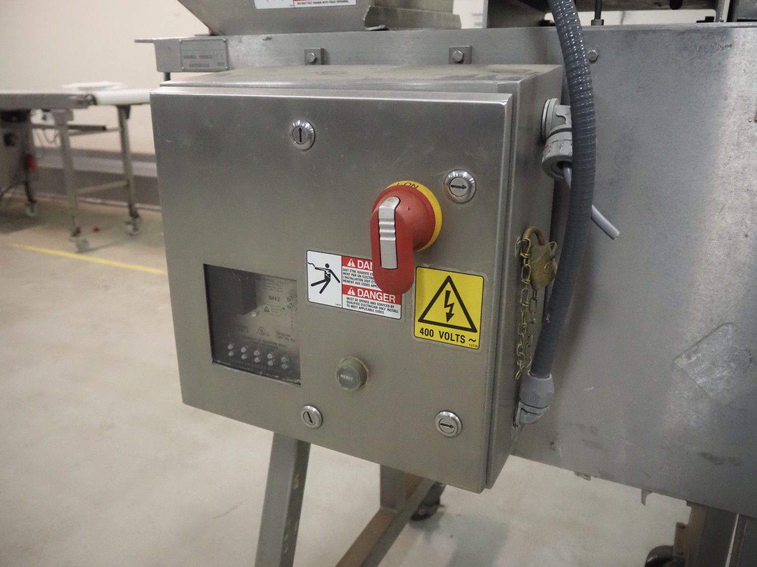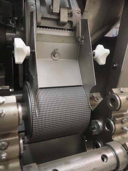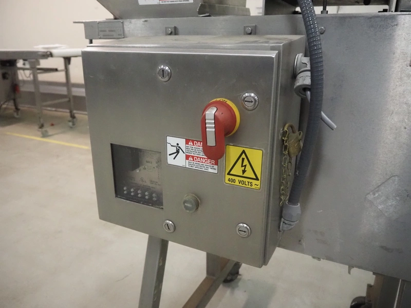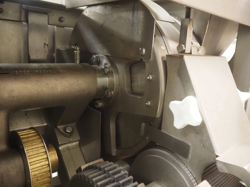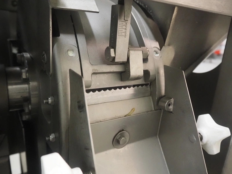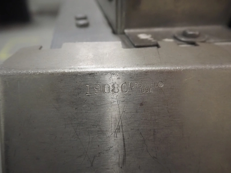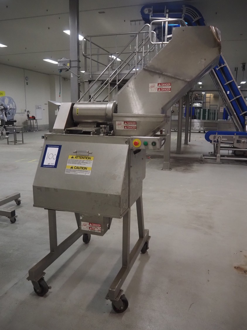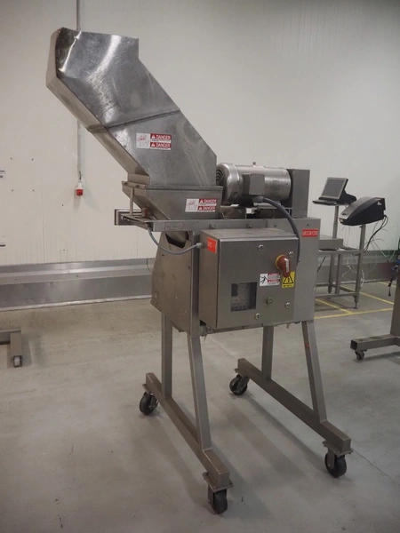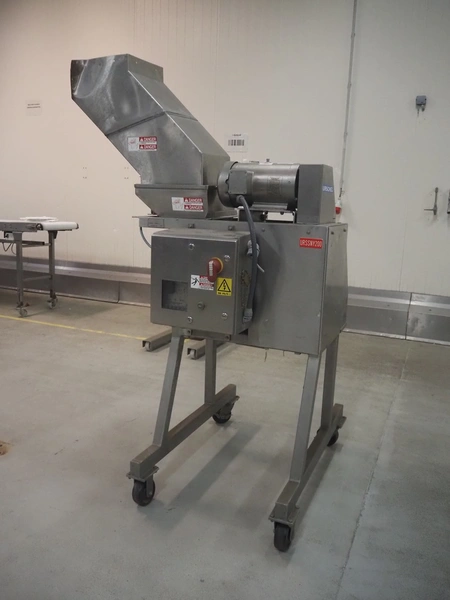 Urschel mobile dicer, type: RA-A, serial number: 2772, year of construction: 2007, infeed clearance: 300 mm x 340 mm, working width: 145 mm, knive dimensions: 100 mm x Ø 330 mm, total dimensions: 1350 mm x 1100 mm x 2100 mm.