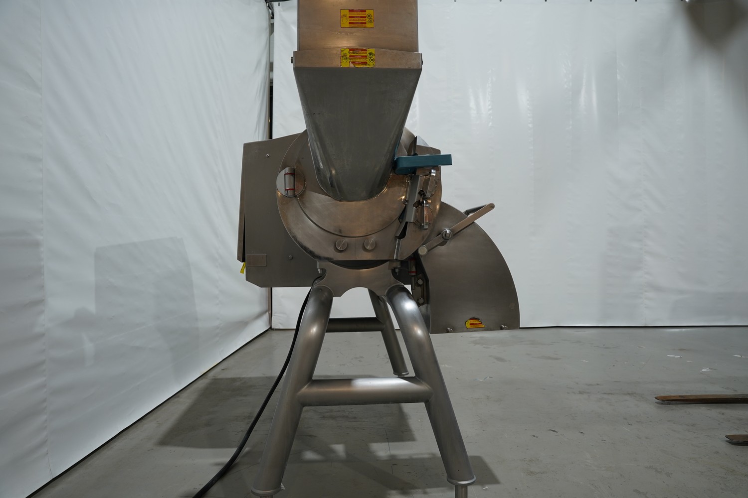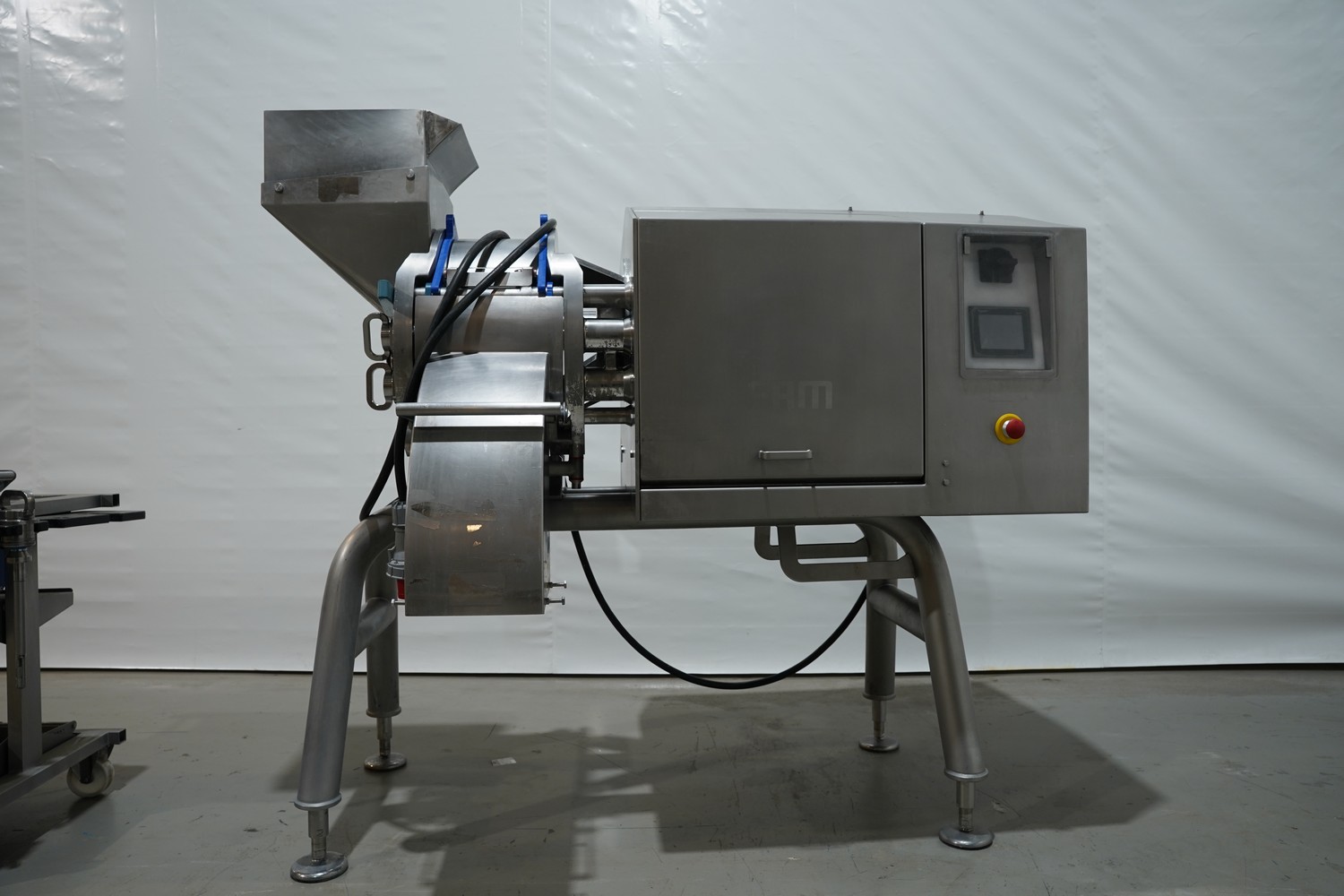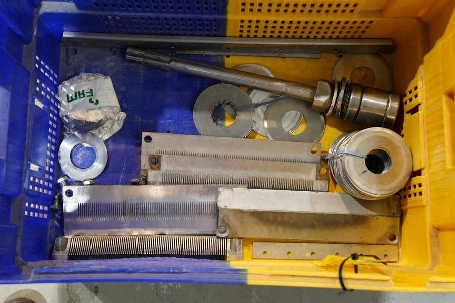 FAM mobile dicer, type: Hymaks, number: 7267, year of construction: 2009, 400 V, 3 Ph, 50 Hz, 20.5 kW, 65.8 A, 1100 kg, dimensions: 2100 mm x 1400 mm x 2000 mm. Including tool trolley, 3 mm and 8 mm knife set and 4 crates with various parts.