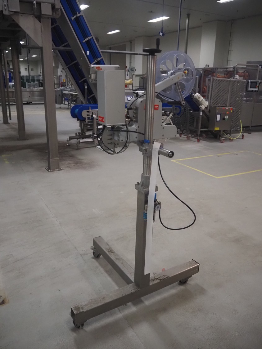 Weber labeller, model: Alpha Compact, serial number: 13030037, year of construction: 07/03/2013, 100-240 V, 47-63 Hz, 300 W, label width: 40 mm, total dimensions: 1000 mm x 760 mm x 1740 mm.