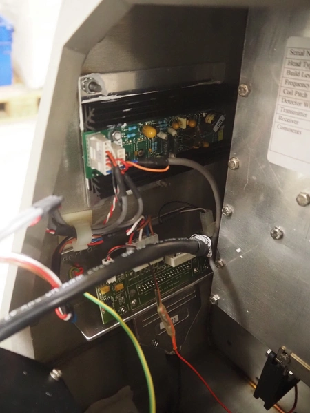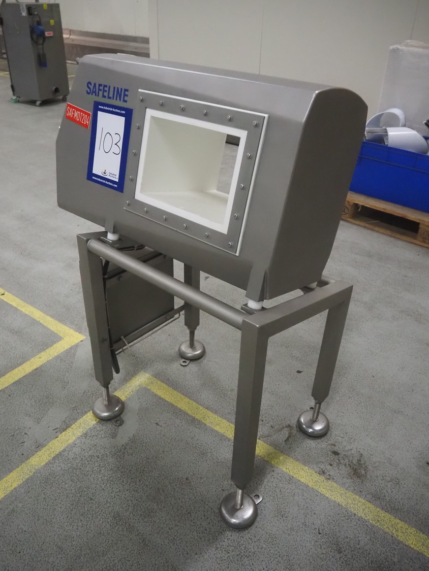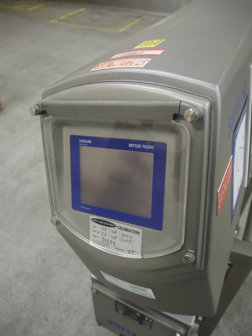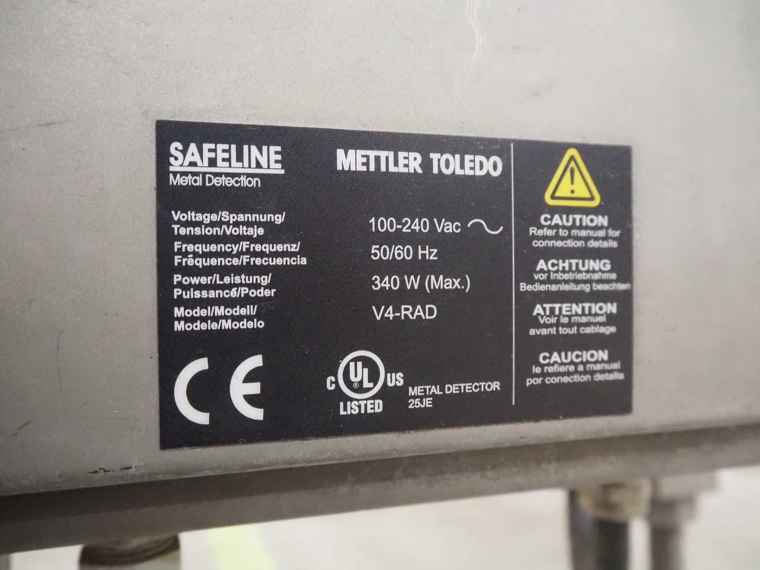 Safeline / Mettler Toledo metal detector head on s/s frame, type: R series profile, model: V4-RAD, serial number: 93539, 100-240 V, 50/60 Hz, 340 W, clearance: 250 mm x 170 mm, total dimensions: 800 mm x 450 mm x 1100 mm.