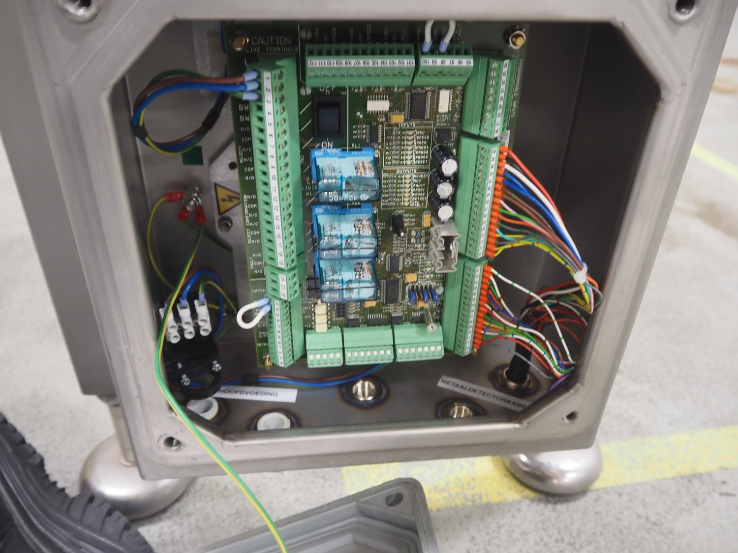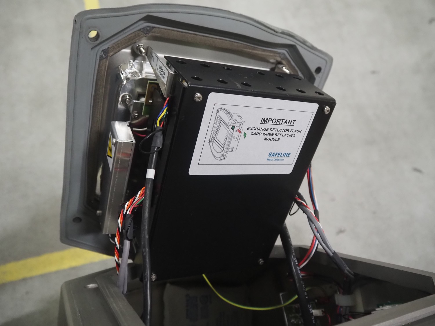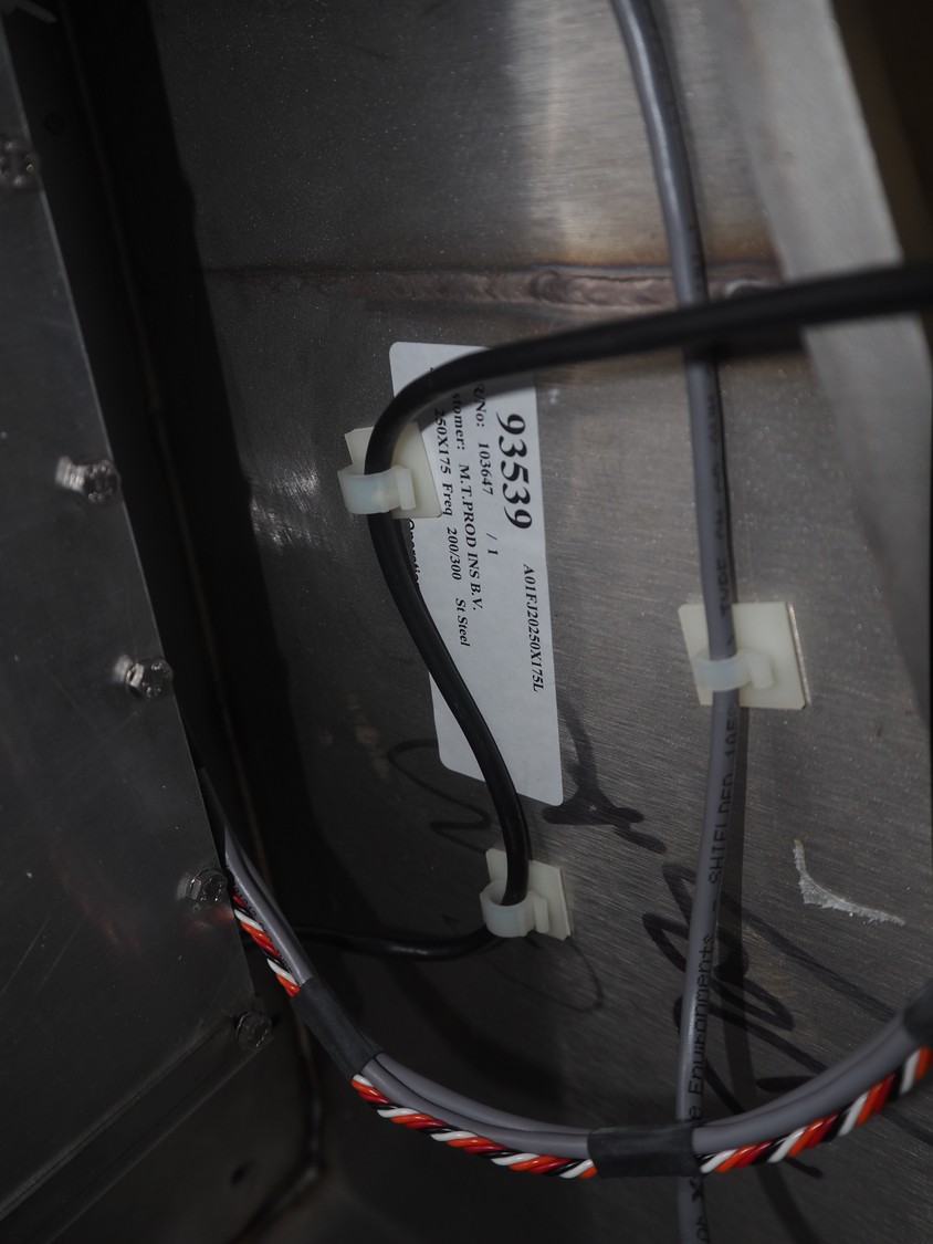 Safeline / Mettler Toledo metal detector head on s/s frame, type: R series profile, model: V4-RAD, serial number: 93539, 100-240 V, 50/60 Hz, 340 W, clearance: 250 mm x 170 mm, total dimensions: 800 mm x 450 mm x 1100 mm.