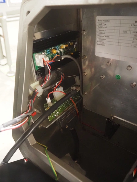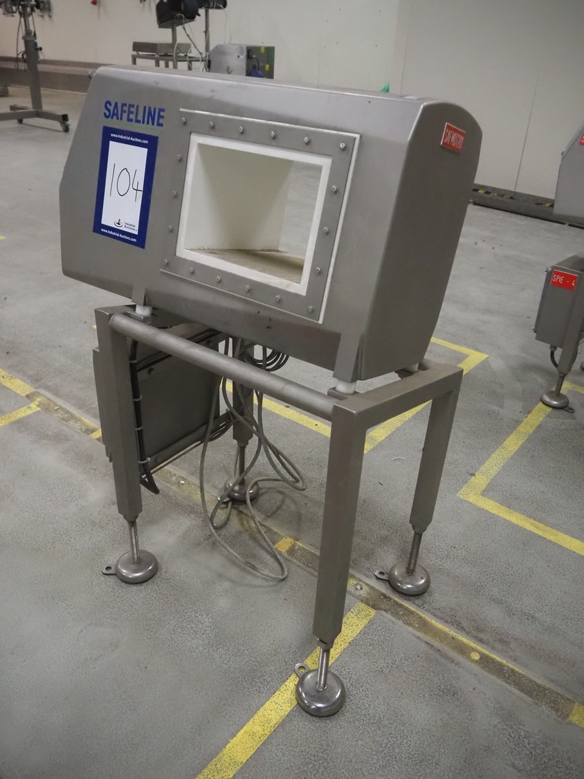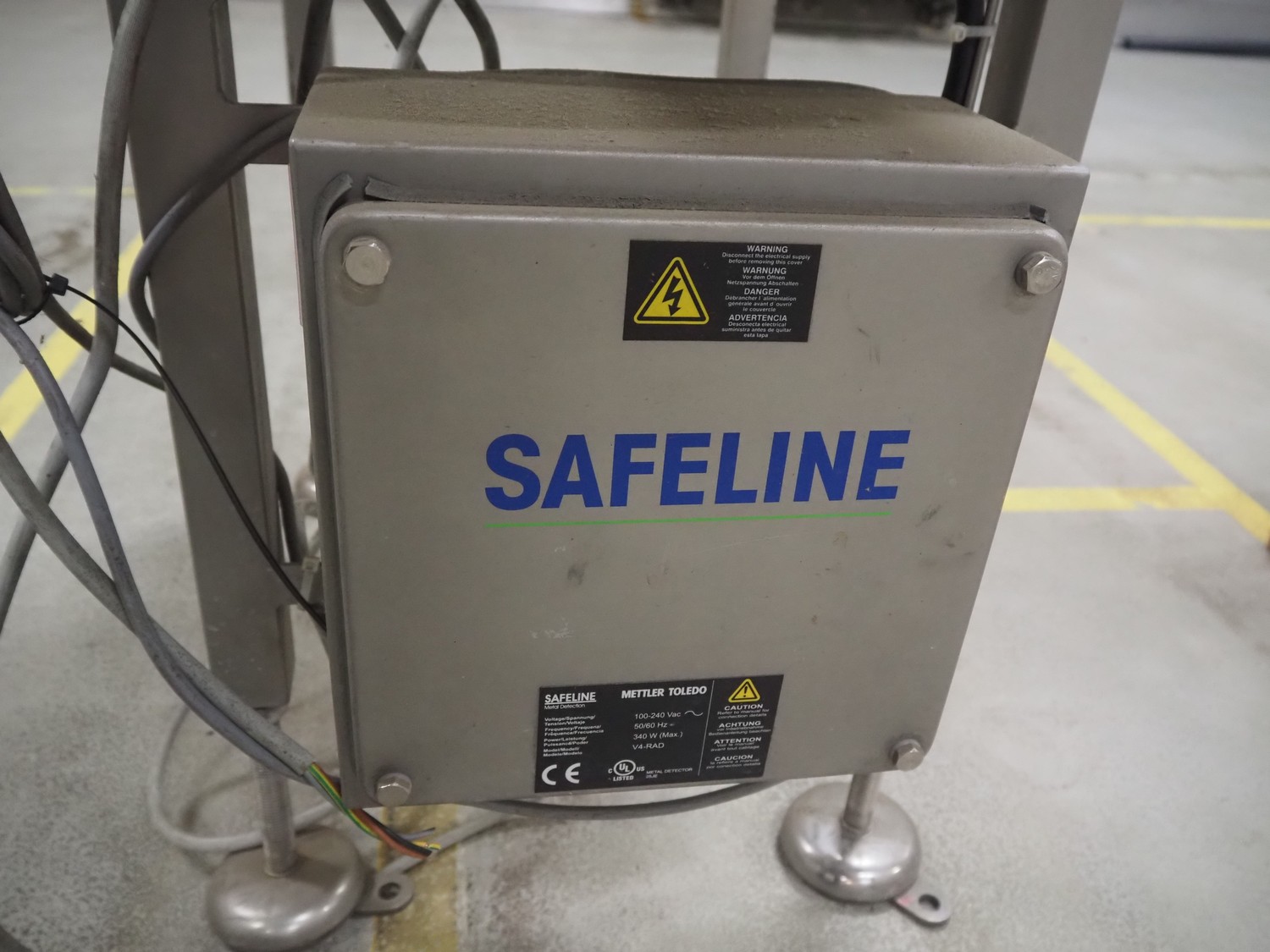 Safeline / Mettler Toledo metal detector head on s/s frame, type: R series profile, model: V4-RAD, serial number: 93540, 100-240 V, 50/60 Hz, 340 W, clearance: 250 mm x 170 mm, total dimensions: 800 mm x 450 mm x 1100 mm.