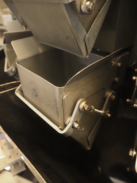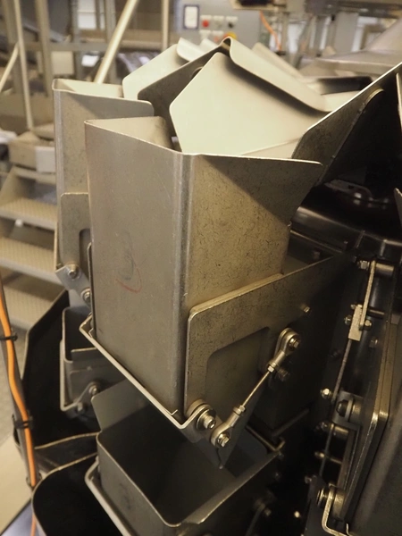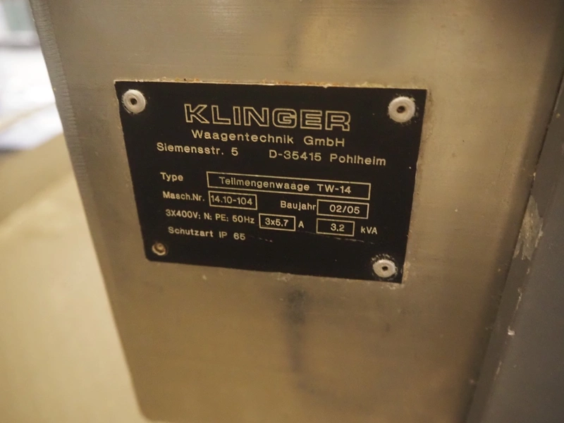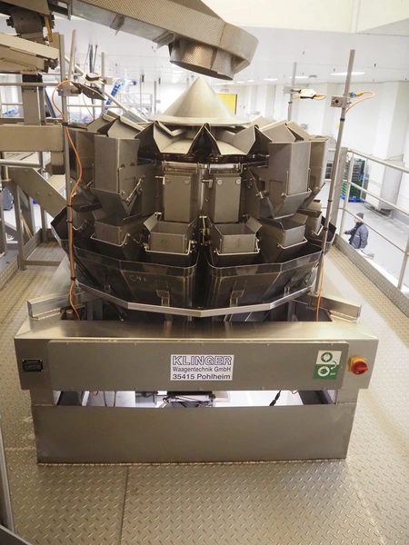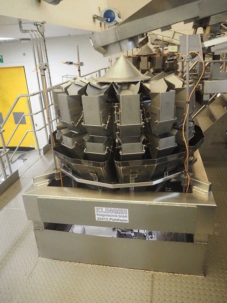 Klinger 14-heads multihead weigher, type: Tellmengenwaage TW-14, machine number: 14.10-104, year of construction: 02/05, 400 V, 3 Ph, 50 Hz, 5.7 A, each basket: 130 mm x 100 mm x 260 mm, total dimensions: 1530 mm x 1450 mm x 2000 mm.