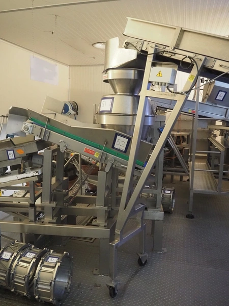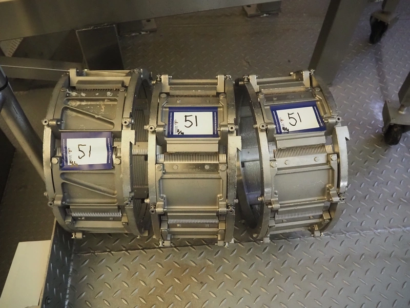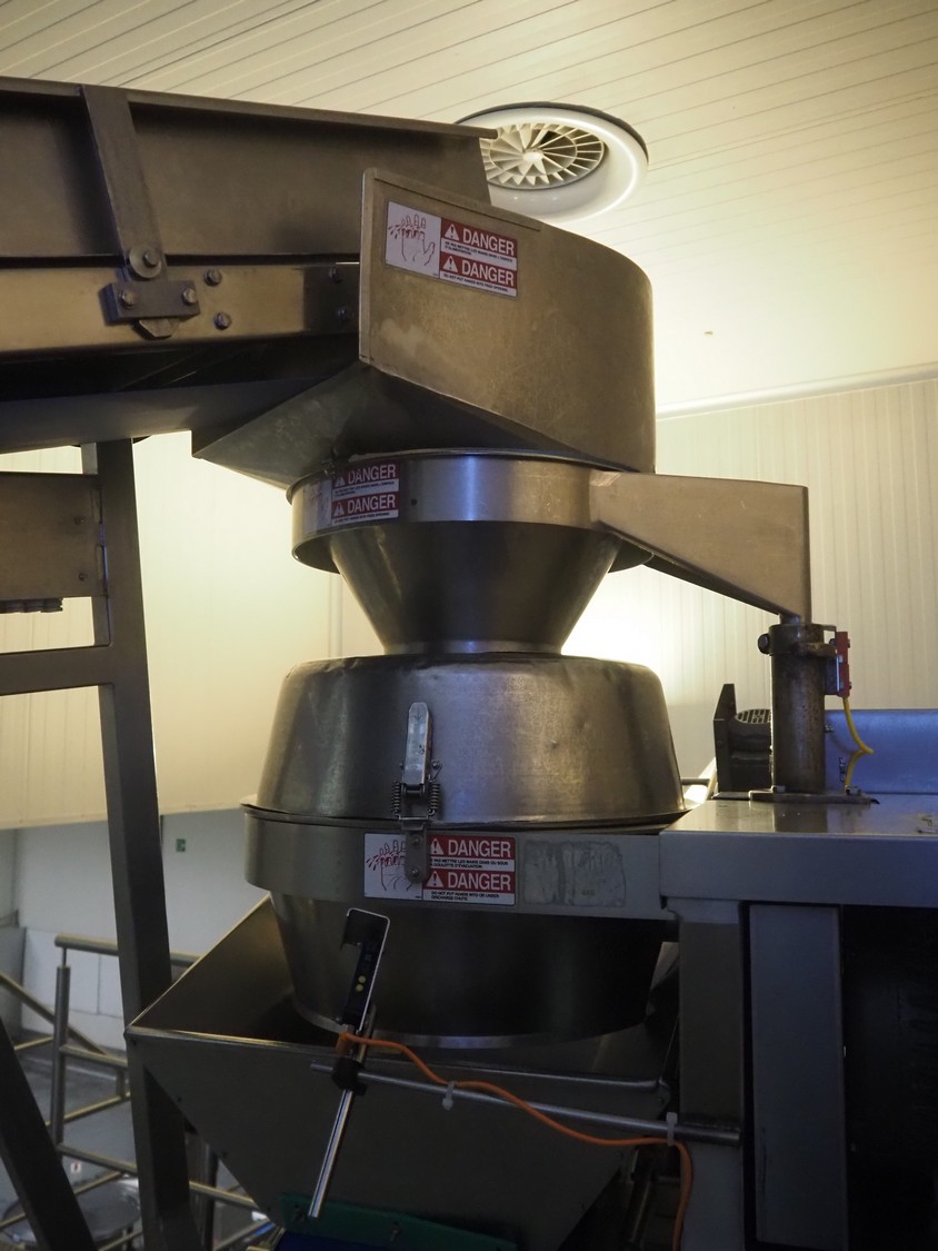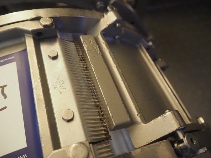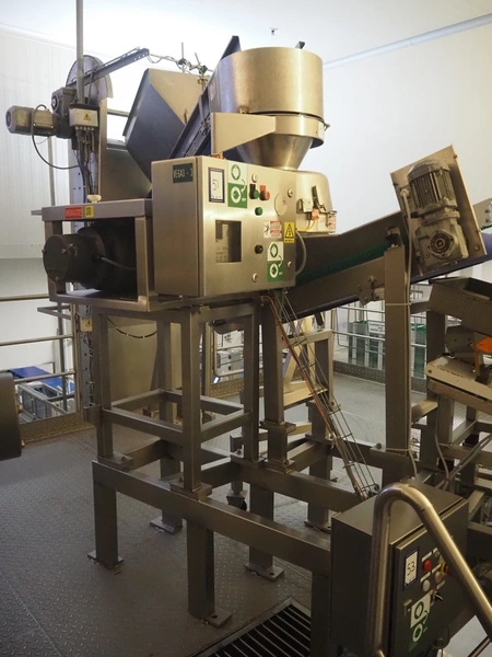 Urschel slicer/shredder, model: CC, serial number: 4601, year of construction: 2005, infeed diameter: 450 mm, knive diameter: 410 mm, knive width: 100 mm, total dimensions: 1550 mm x 1300 mm x 2240 mm. Including 2 extra knives.