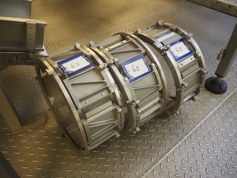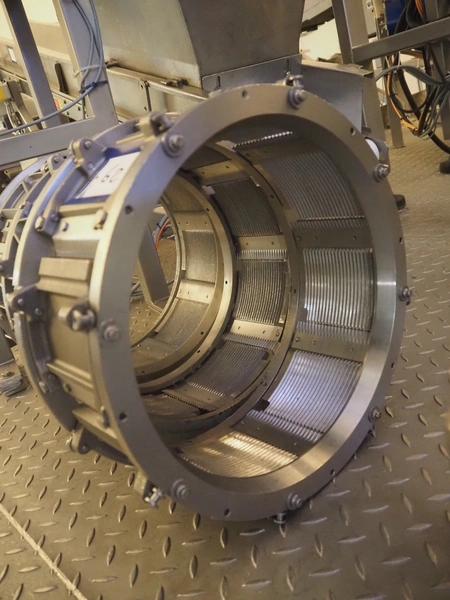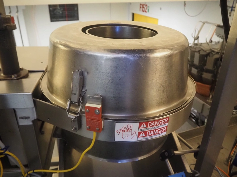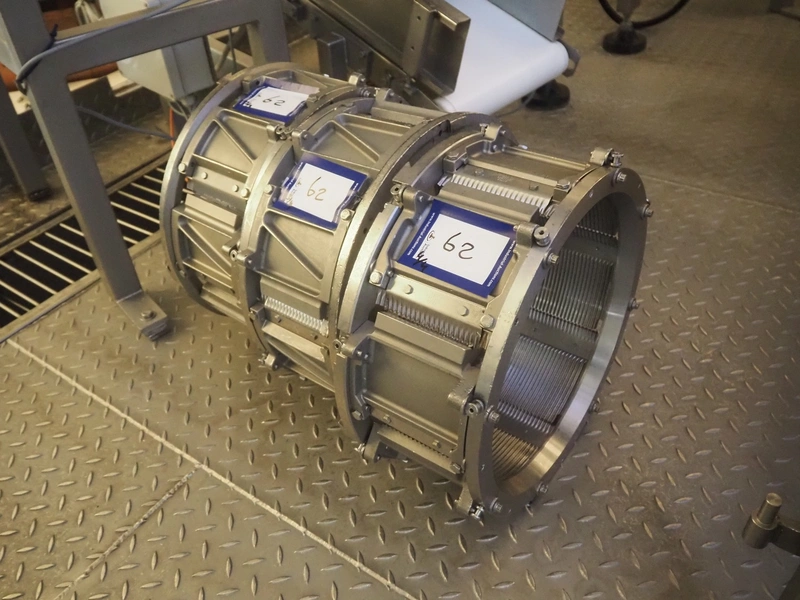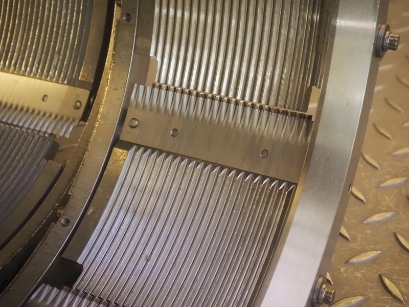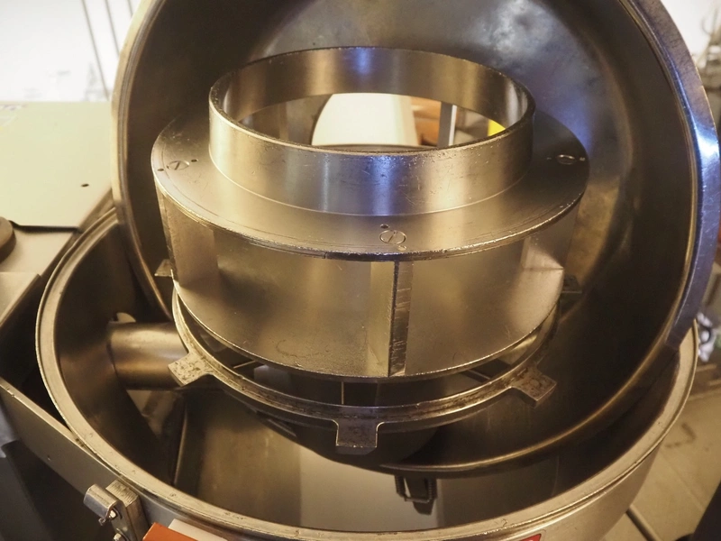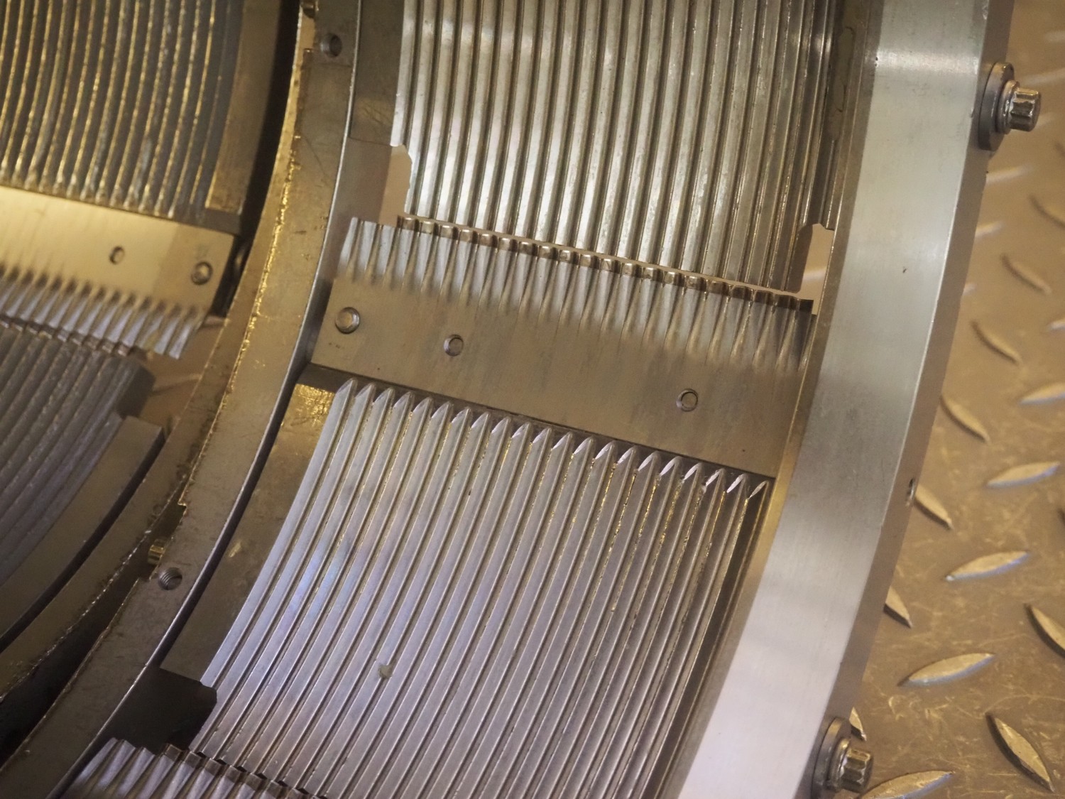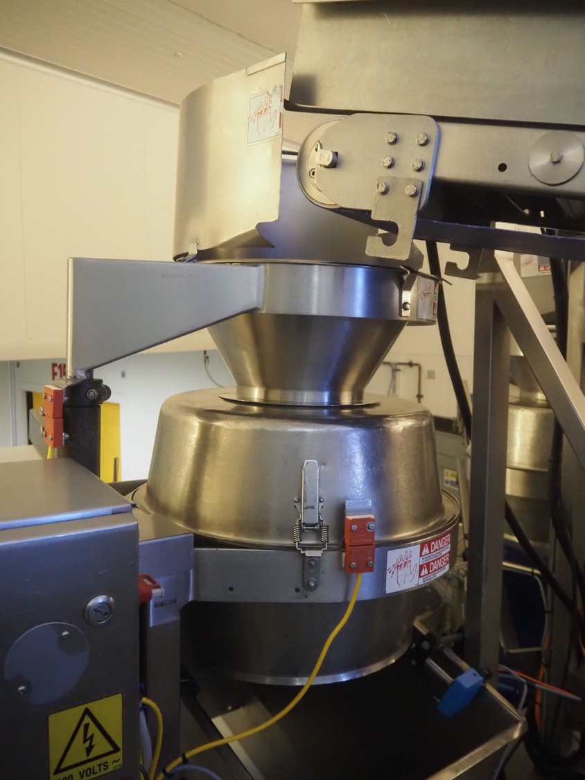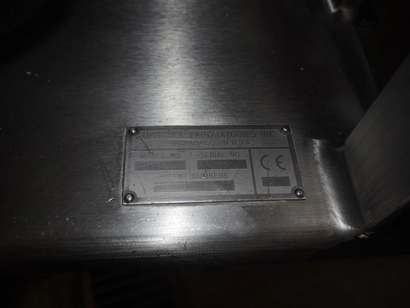 Urschel slicer/shredder, model: CC, serial number: 5003, year of construction: 2007, infeed diameter: 450 mm, knive diameter: 410 mm, knive width: 100 mm, total dimensions: 1550 mm x 1300 mm x 2240 mm. Including 2 extra knives.