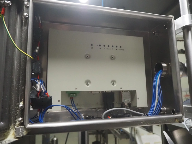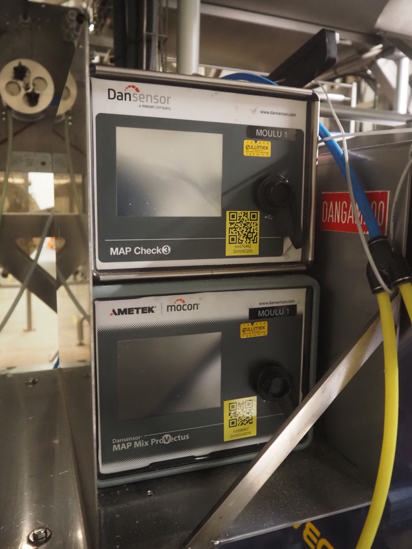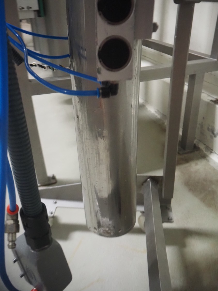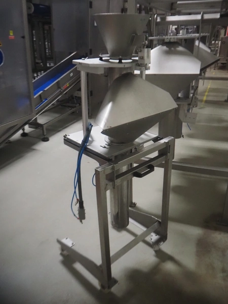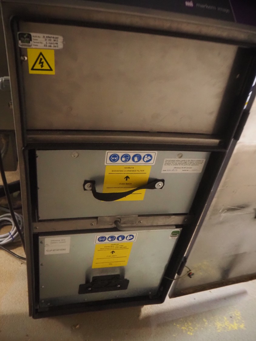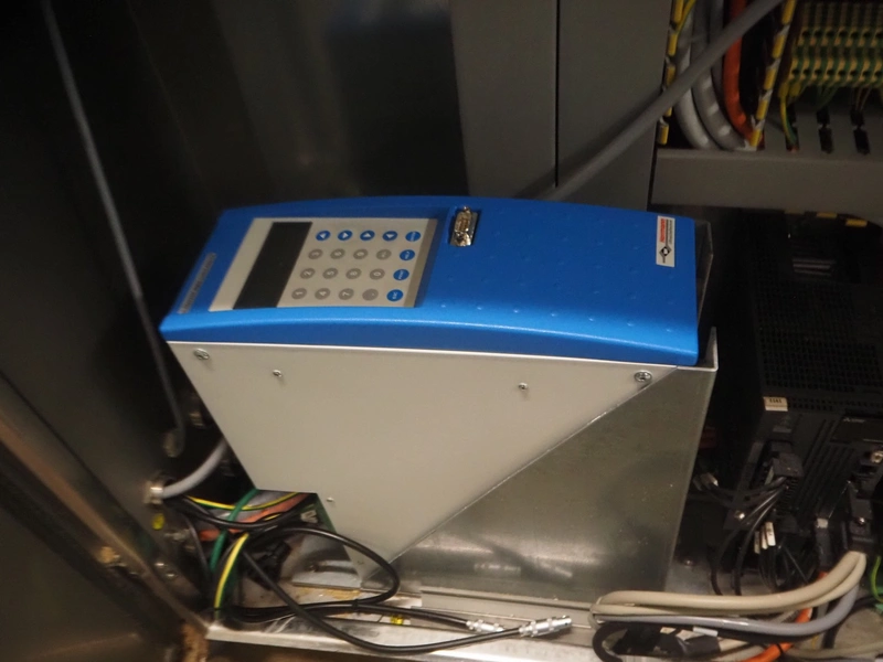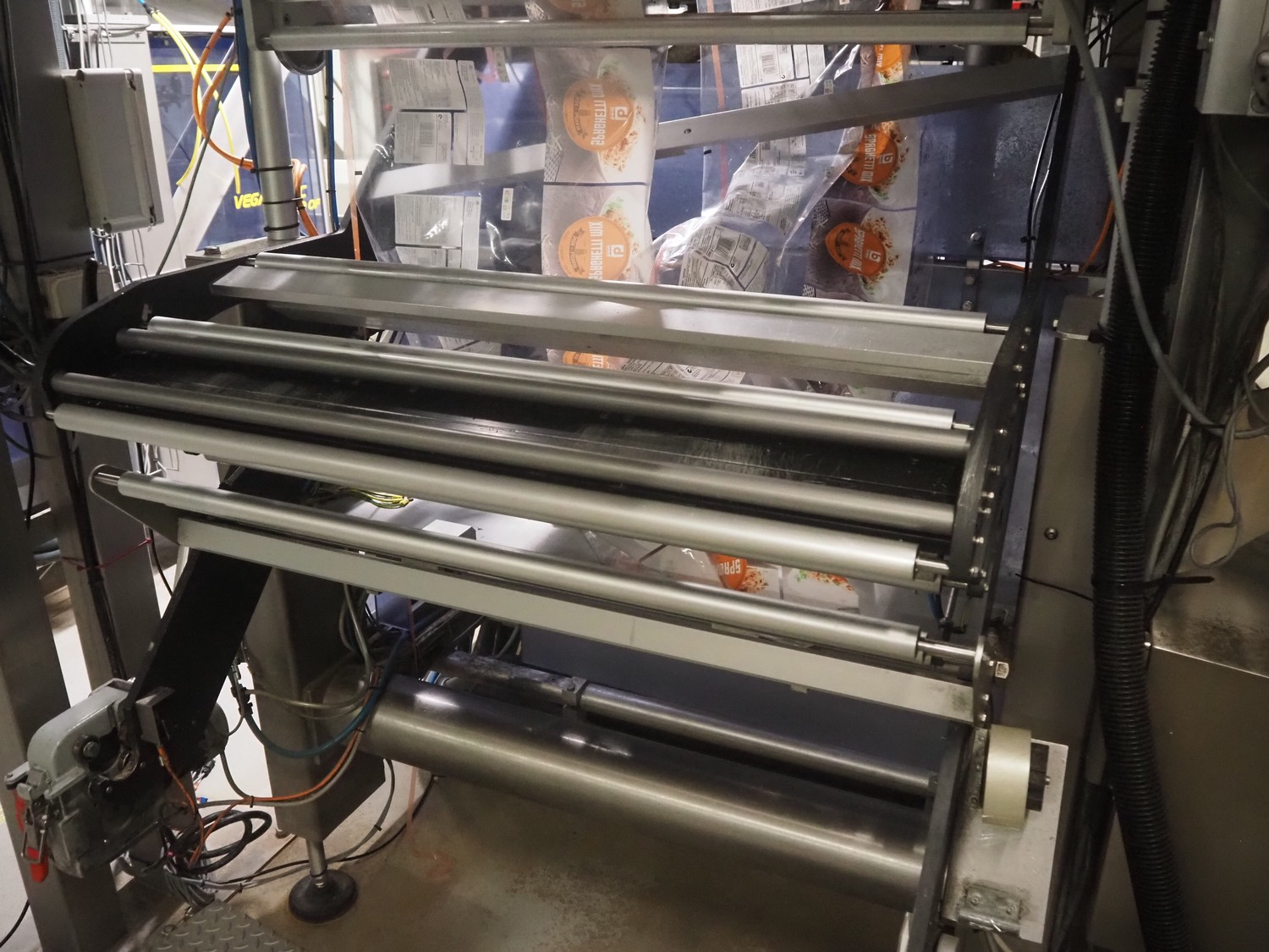Ilapak vertical bag form-, fill-, and seal machine, model: Vegatronic 2000 OF, serial number: 0741812002, 400 V, 3 Ph, 50 Hz, 17 A, filling pipe: Ø 120 mm, vertical seal length: 270 mm, horizontal seal length: 320 mm, film width: 470 mm, total dimensions: 2700 mm x 2350 mm x 2450 mm. Markem smartlaser unit, model: ES500, serial number: 05/13/ES500-960, year of construction: 05/2013, 230 V, 50/60 Hz, 12.5 A, dimensions: 440 mm x 430 mm x 980 mm, switch cabinet: 1450 mm x 600 mm x 1330 mm, 2 extra filling pipes: Ø 80 mm and 130 mm, trolley for filling pipe, dimensions: 580 mm x 640 mm x 1000 mm, trolley with film holders, film holder width: (3x) 1320 mm, dimensions trolley: 960 mm x 650 mm x 1040 mm.