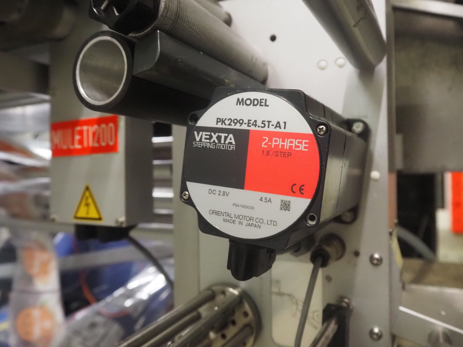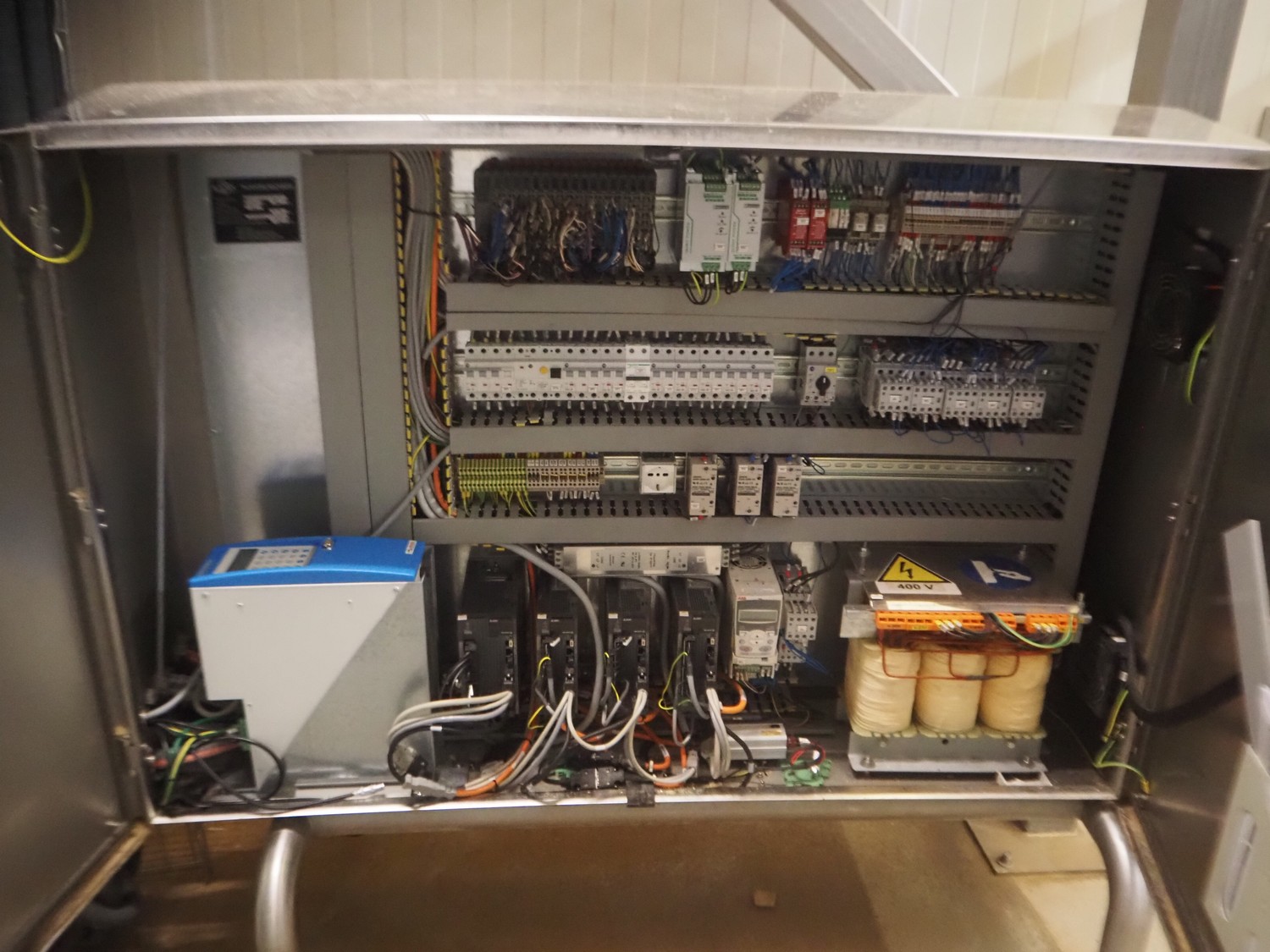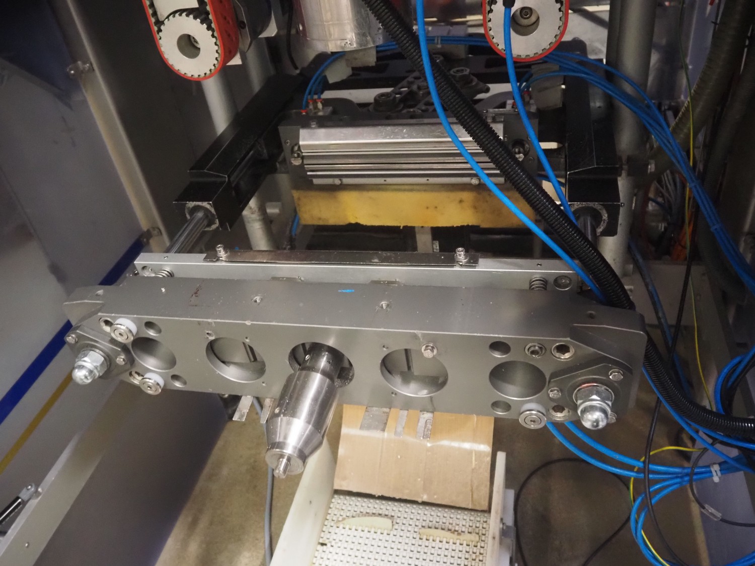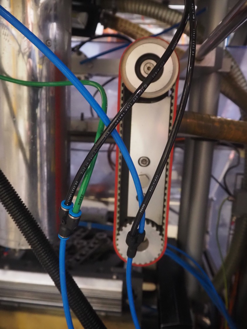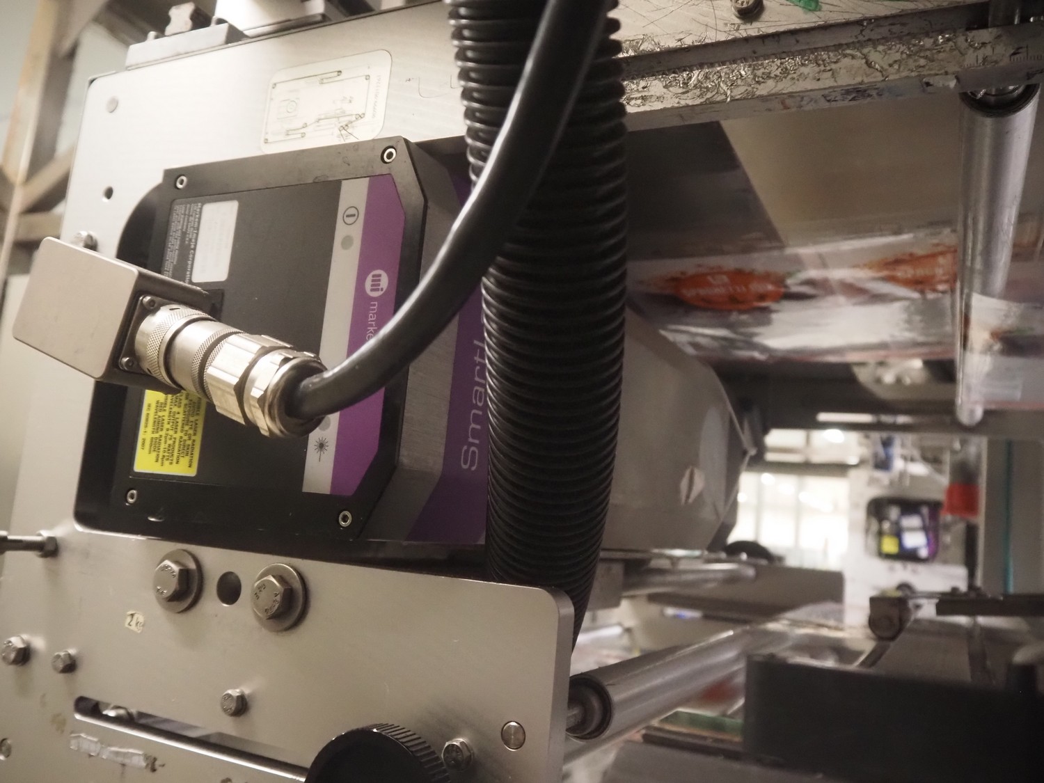 Ilapak vertical bag form-, fill-, and seal machine, model: Vegatronic 2000 OF, serial number: 0741812002, 400 V, 3 Ph, 50 Hz, 17 A, filling pipe: Ø 120 mm, vertical seal length: 270 mm, horizontal seal length: 320 mm, film width: 470 mm, total dimensions: 2700 mm x 2350 mm x 2450 mm. Markem smartlaser unit, model: ES500, serial number: 05/13/ES500-960, year of construction: 05/2013, 230 V, 50/60 Hz, 12.5 A, dimensions: 440 mm x 430 mm x 980 mm, switch cabinet: 1450 mm x 600 mm x 1330 mm, 2 extra filling pipes: Ø 80 mm and 130 mm, trolley for filling pipe, dimensions: 580 mm x 640 mm x 1000 mm, trolley with film holders, film holder width: (3x) 1320 mm, dimensions trolley: 960 mm x 650 mm x 1040 mm.