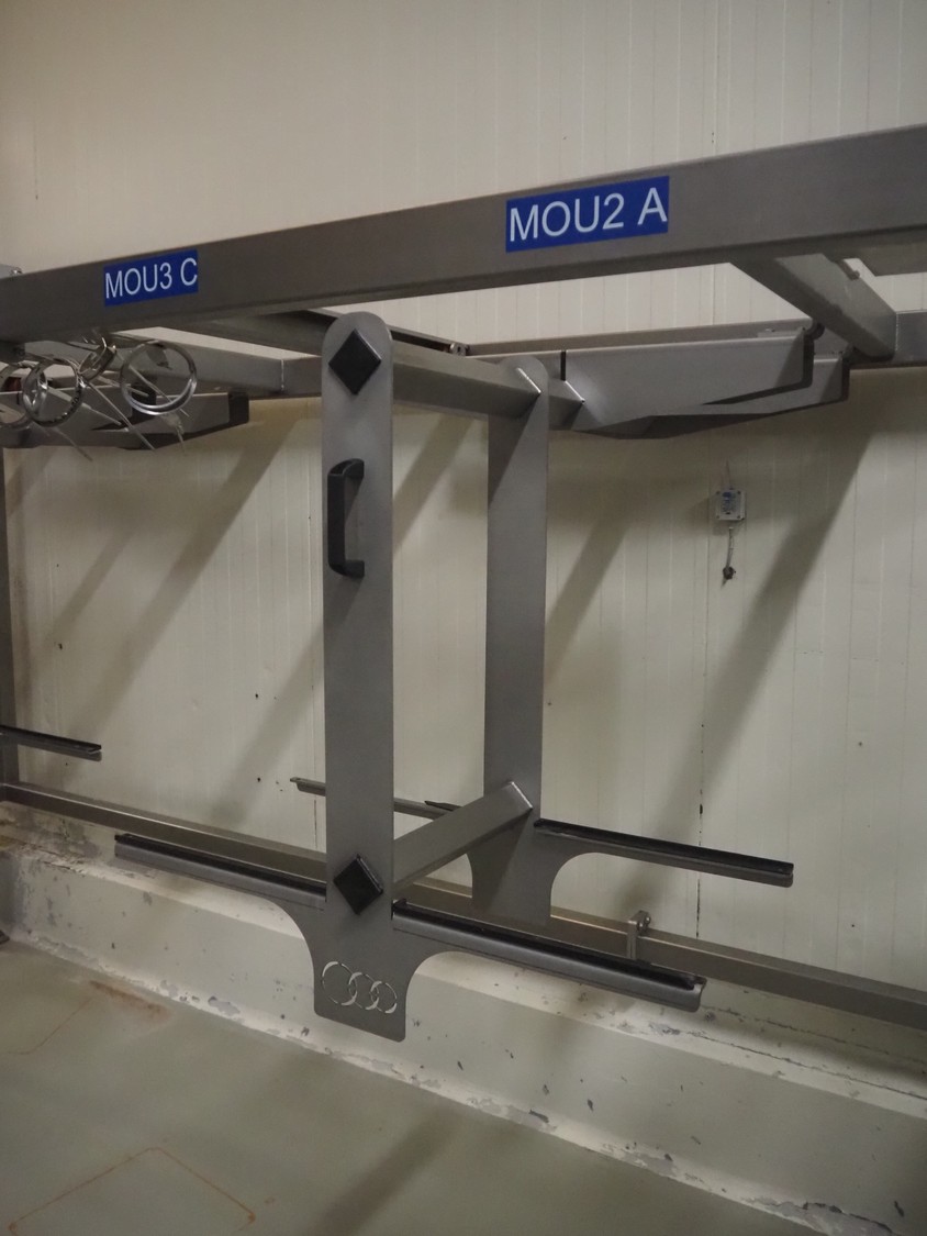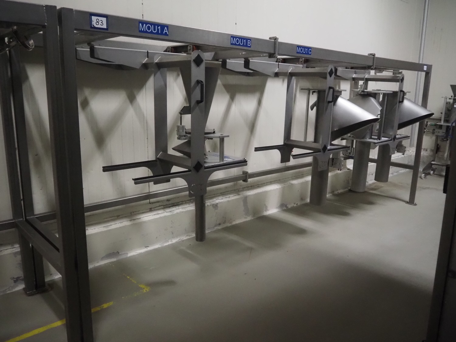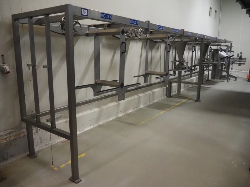 2 s/s racks for filling pipes, (2x) 6 places, total dimensions: (2x) 4800 mm x 1100 mm x 1930 mm. Without filling pipes.
