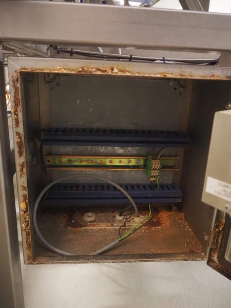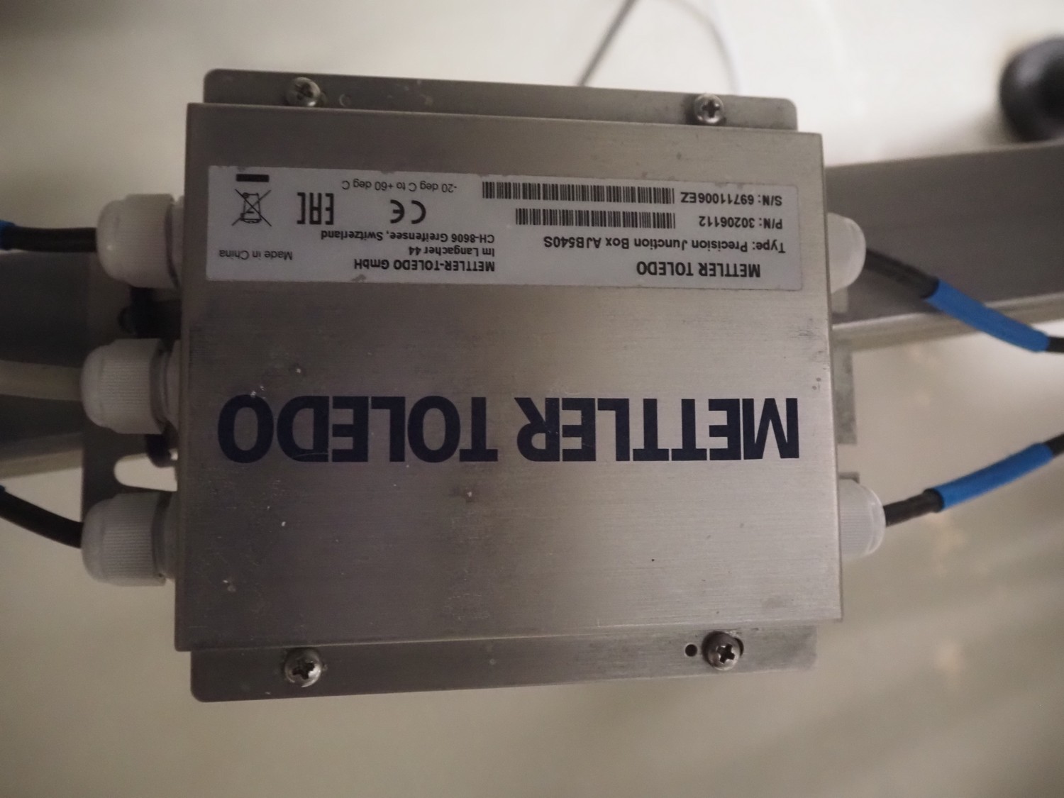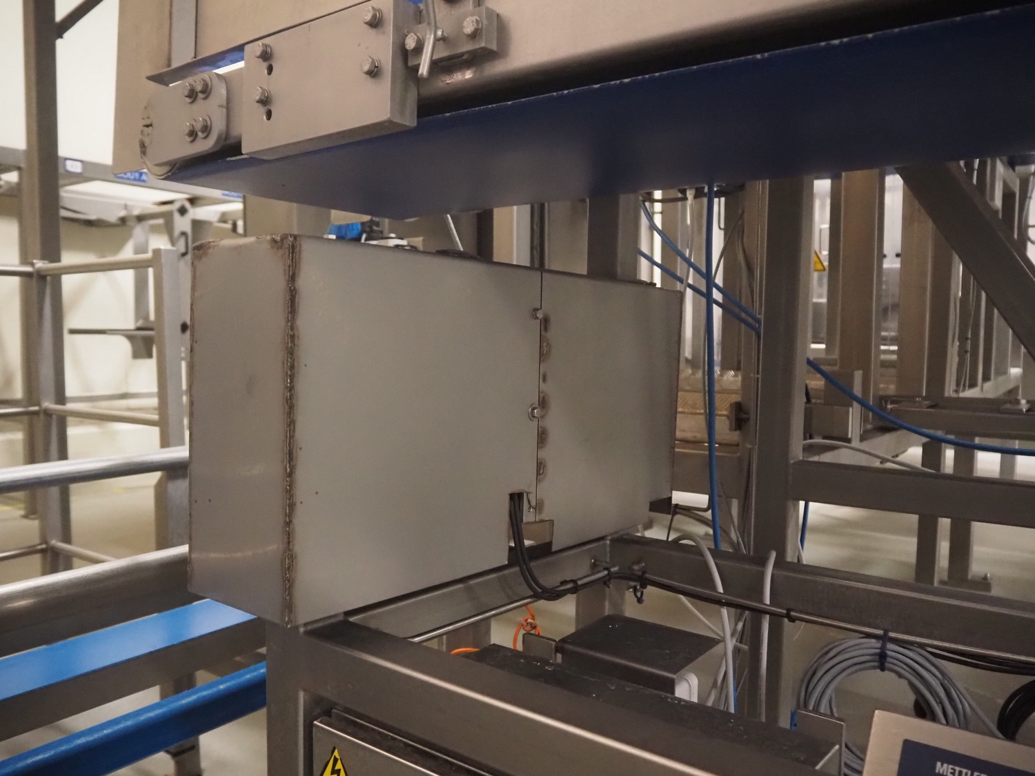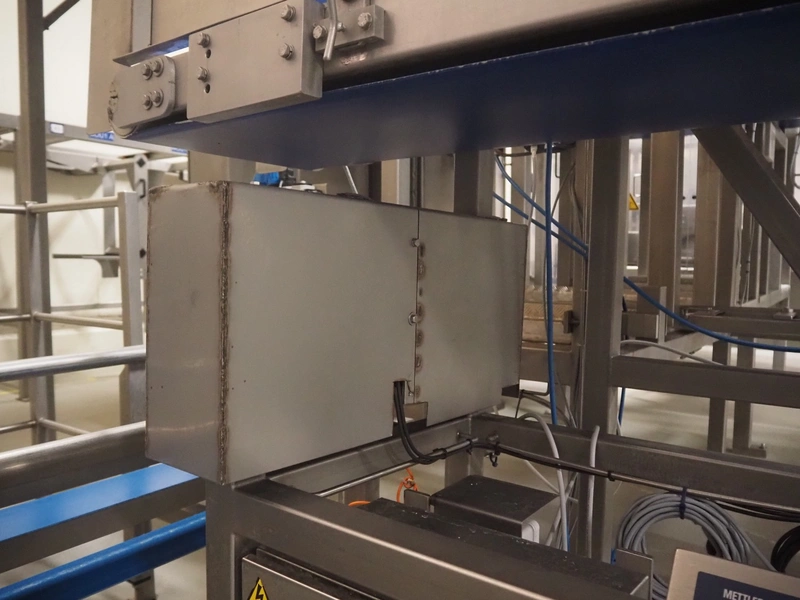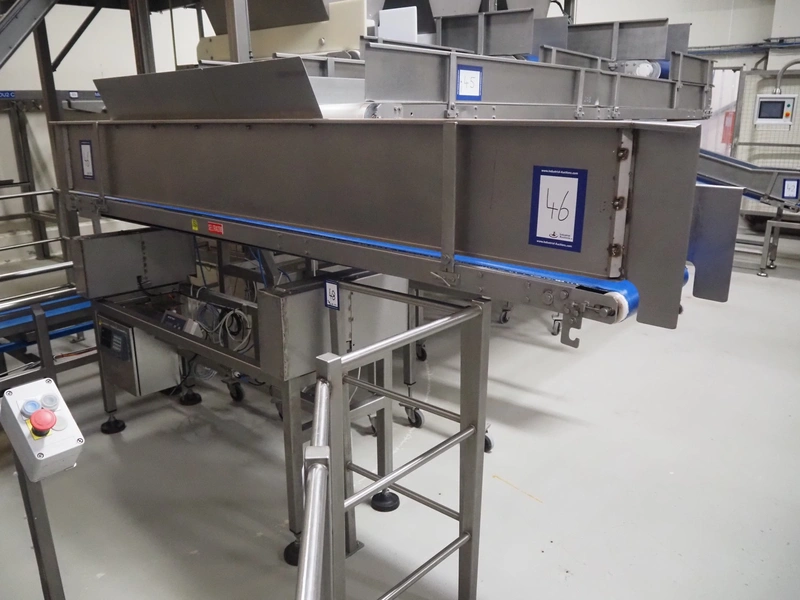 Weighing transport belt with Mettler Toledo indicator, indicator model: IND331 Harsh, serial number: B903102709, 100/240 V, 50/60 Hz, 0.1 A, plastic belt, belt width: 370 mm, total dimensions: 3600 mm x 630 mm x 1810 mm.