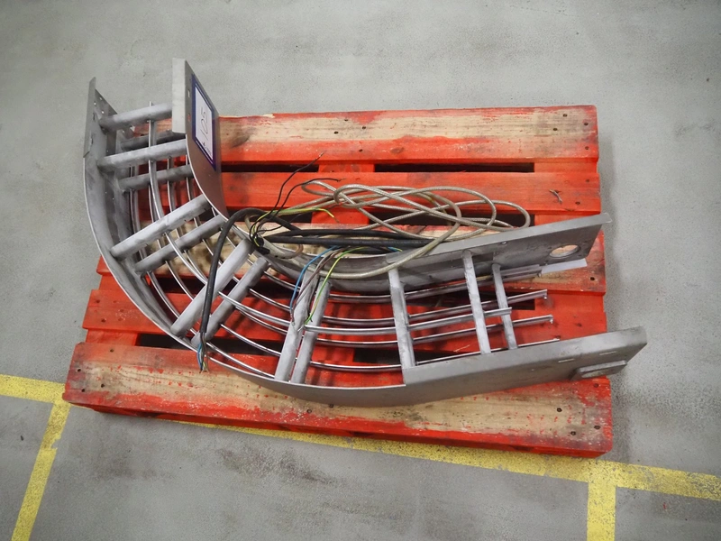 S/s 90° curve conveyor, belt width: 240 mm, total dimensions: 1150 mm x 850 mm x 240 mm. Missing belt.