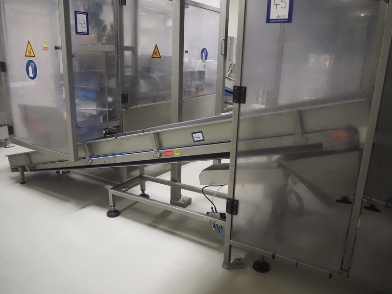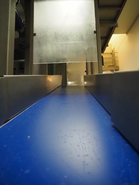 Elevating belt, s/s frame, plastic belt, belt width: 350 mm, elevating height: 1130 mm, total dimensions: 4000 mm x 500 mm x 1300 mm.