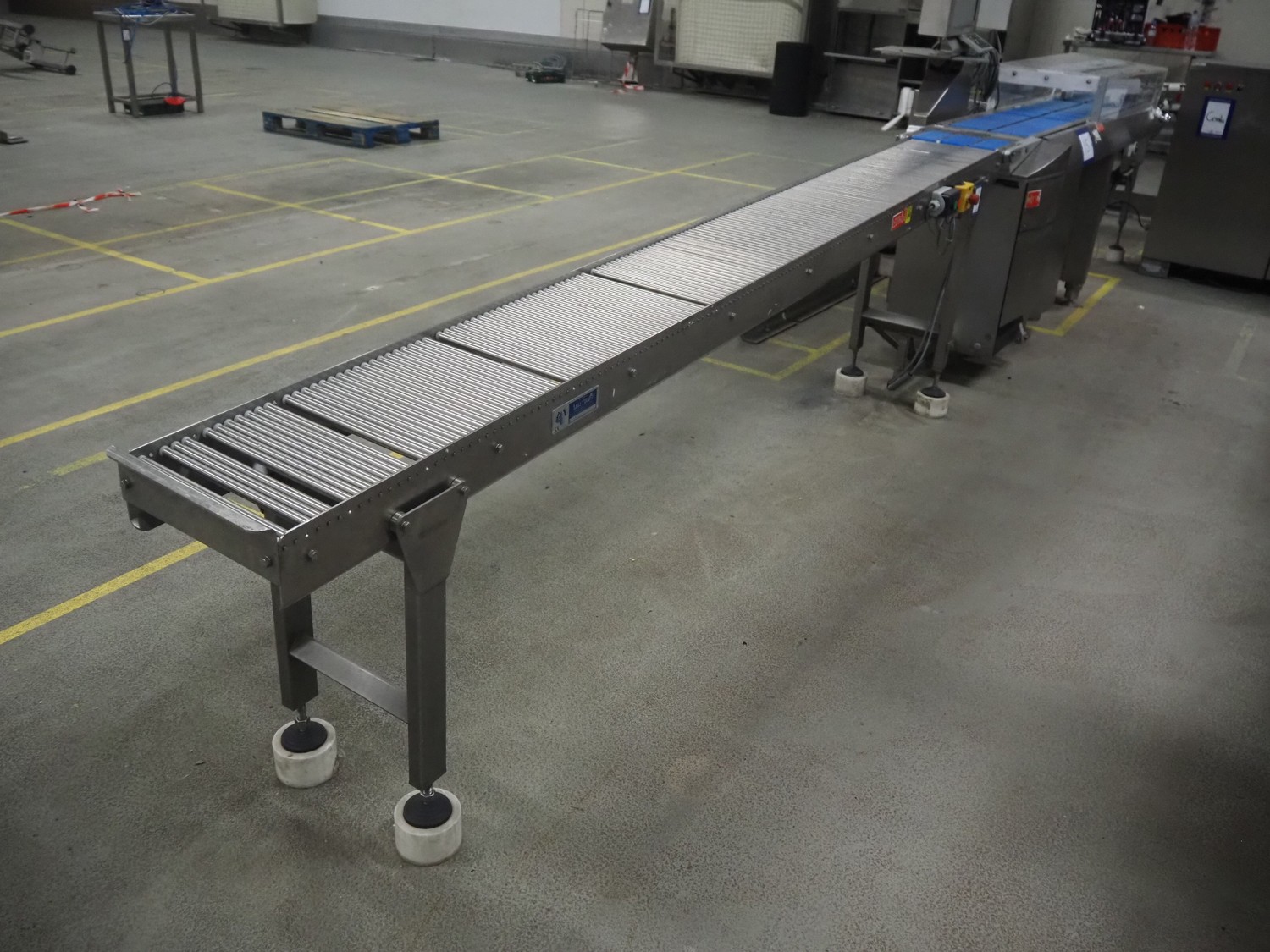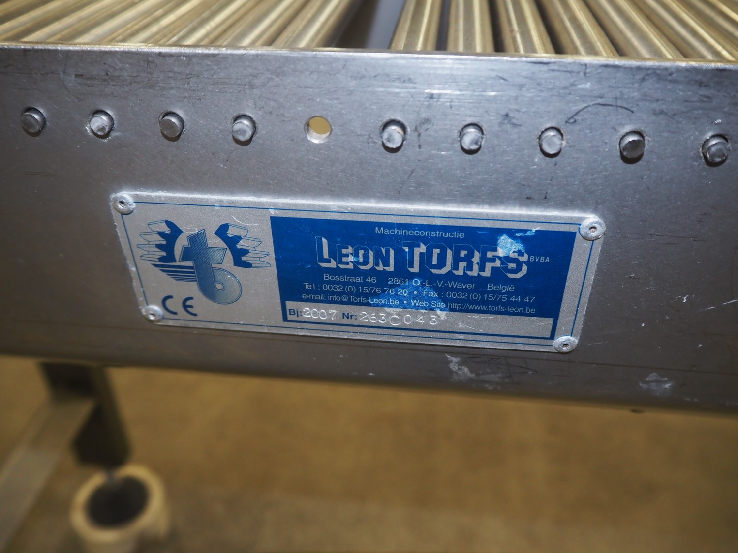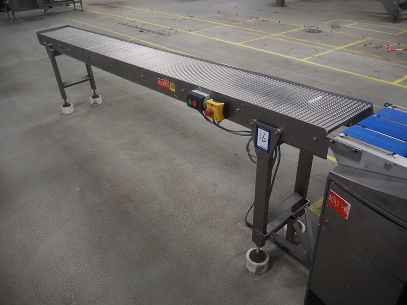 Leon Torfs roller conveyor, number: 263C043, year of construction: 2007, s/s frame, s/s rollers, roller width: 300 mm, total dimensions: 3000 mm x 400 mm x 870 mm.