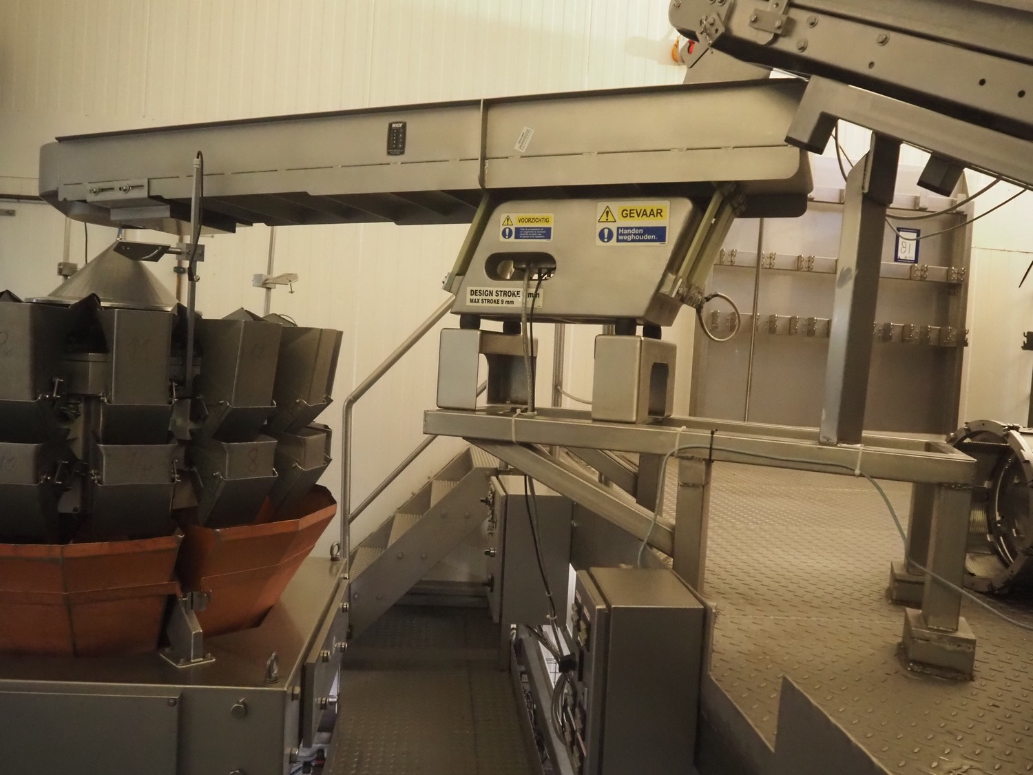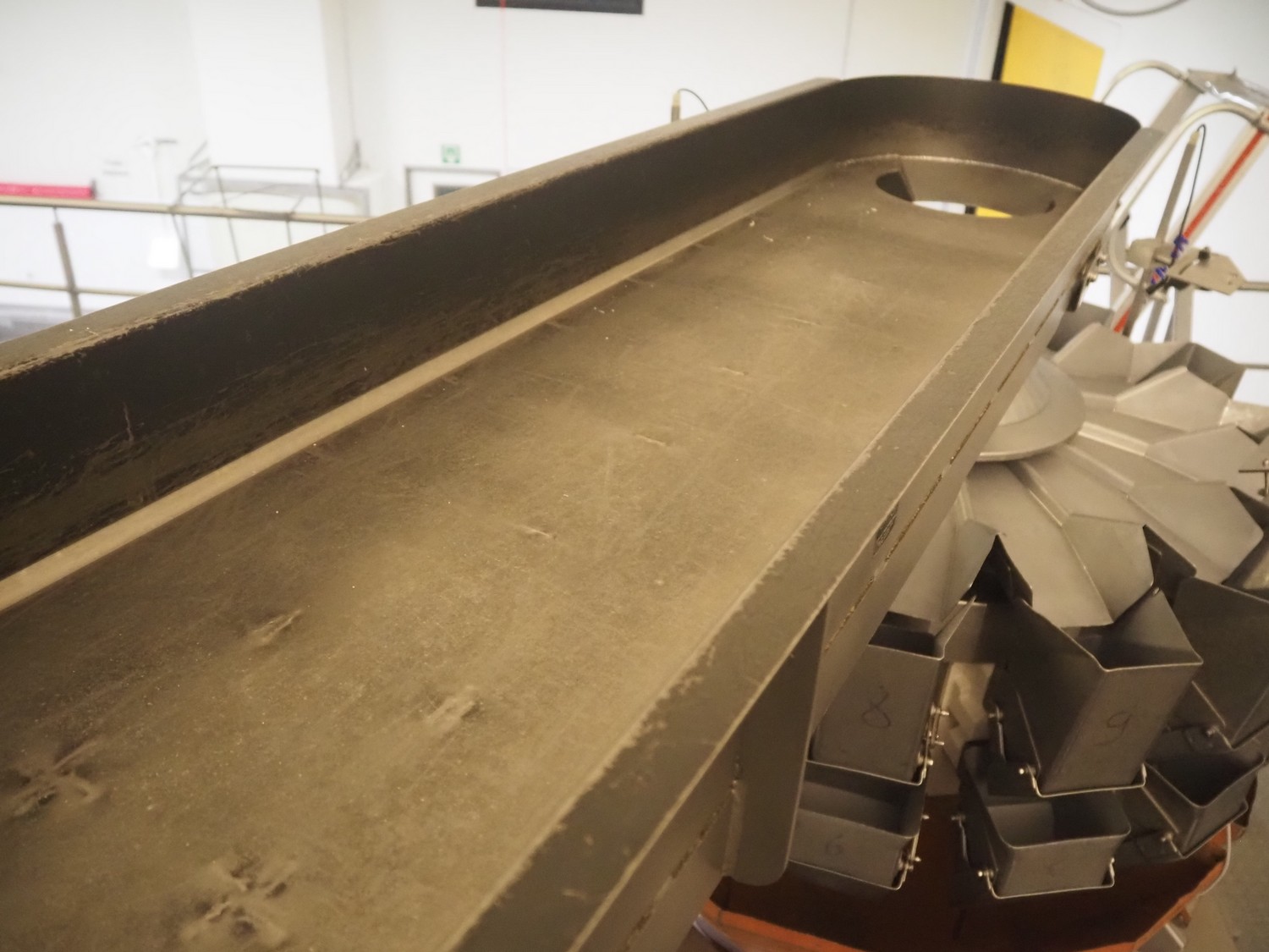 Impulse HS Key vibrating gutter, type: MVEIC, serial number: 4209348, year of construction: 2006, gutter length: 2050 mm, gutter width: 400 mm, outfeed diameter: Ø 250 mm, total dimensions: 2000 mm x 480 mm x 650 mm.