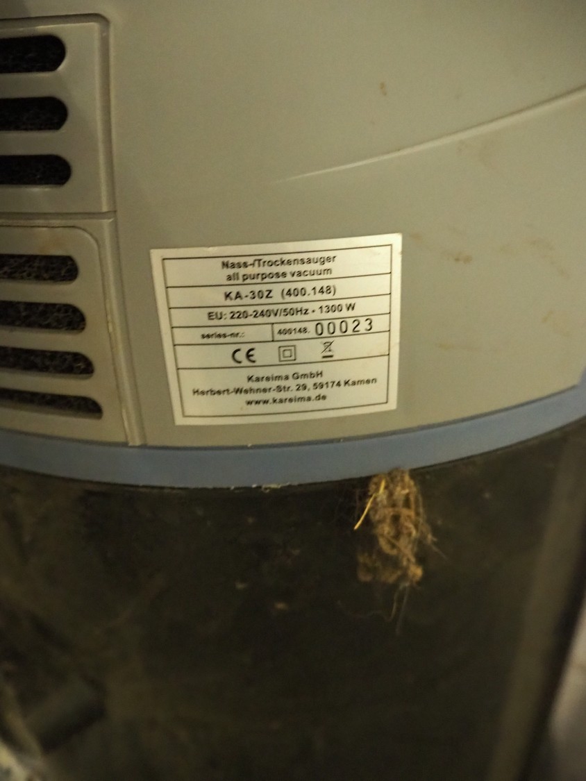 Kareima wet-/dry vacuum cleaner, type: KA-30Z, dimensions: 400 mm x 300 mm x 1300 mm.