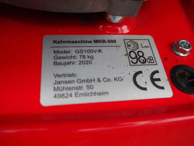 Jansen GmbH & Co. KG road sweeper, model: MKB-500; BS 6,5 PS, Briggs & Stratton Motor, year of construction: 2020, weight: 78 kg, working width: 1000 mm, dimensions: 2100 mm x 1050 mm x 1300 mm.