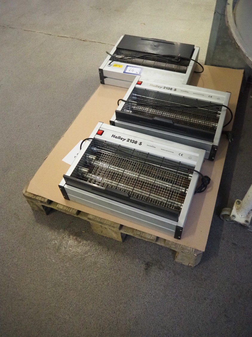 Pallet with 3 Tecnall S.r.l. insect killers, type: Halley 2138, 230 V, 50 Hz, 140 W, dimensions: (3x) 510 mm x 150 mm x 380 mm.