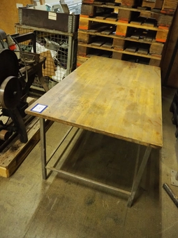 Table, s/s frame, wooden top, dimensions: 1500 mm x 810 mm x 780 mm.0 bidsLot is closed