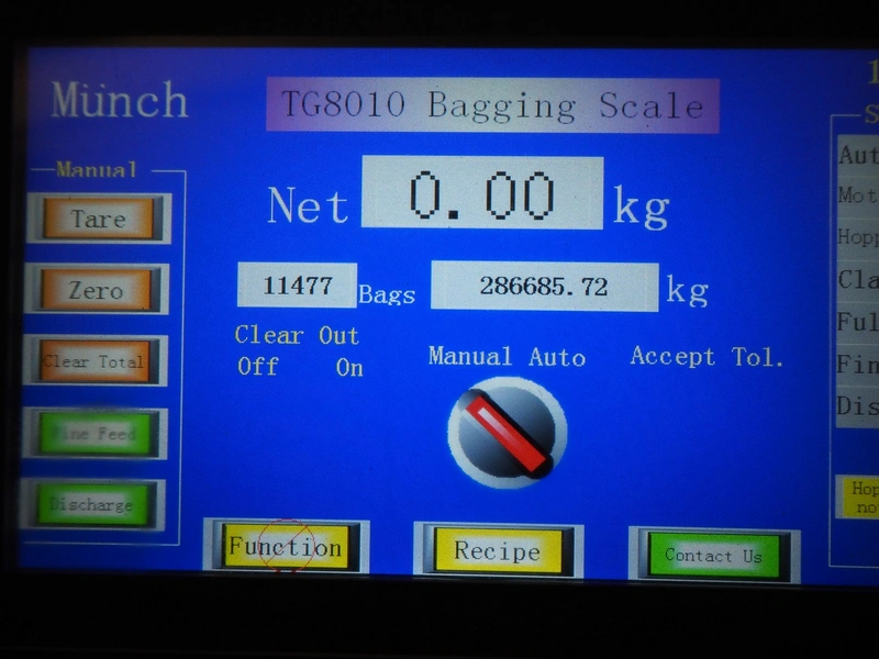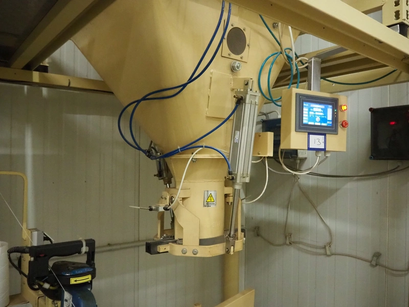 Münch-Edelstahl GmbH big bag filling machine, type: TG8010, year of construction: 2016, inside dimensions silo: 1900 mm x 1600 mm x 1100 mm, total dimensions: 1900 mm x 1600 mm x 5200 mm.
