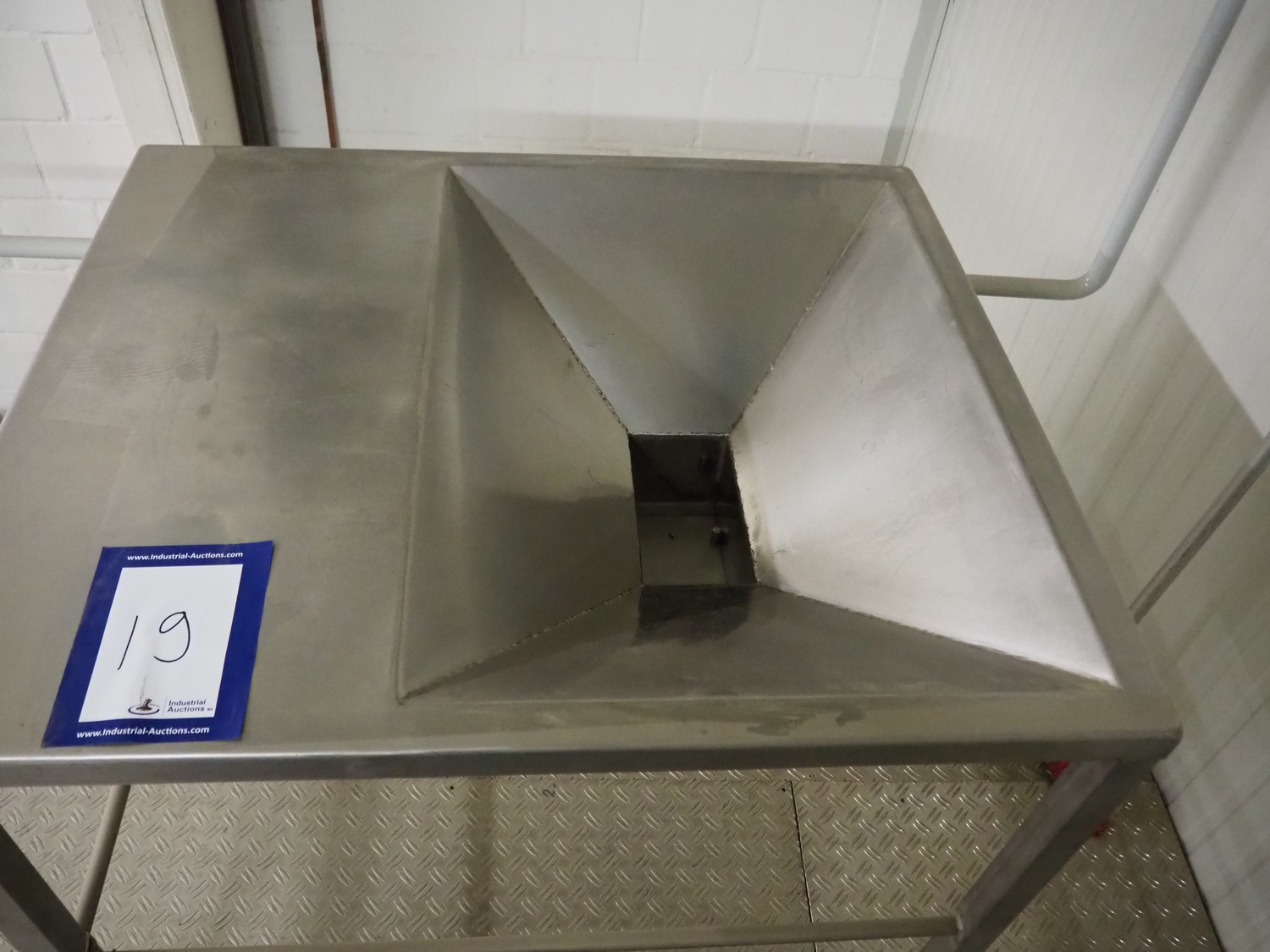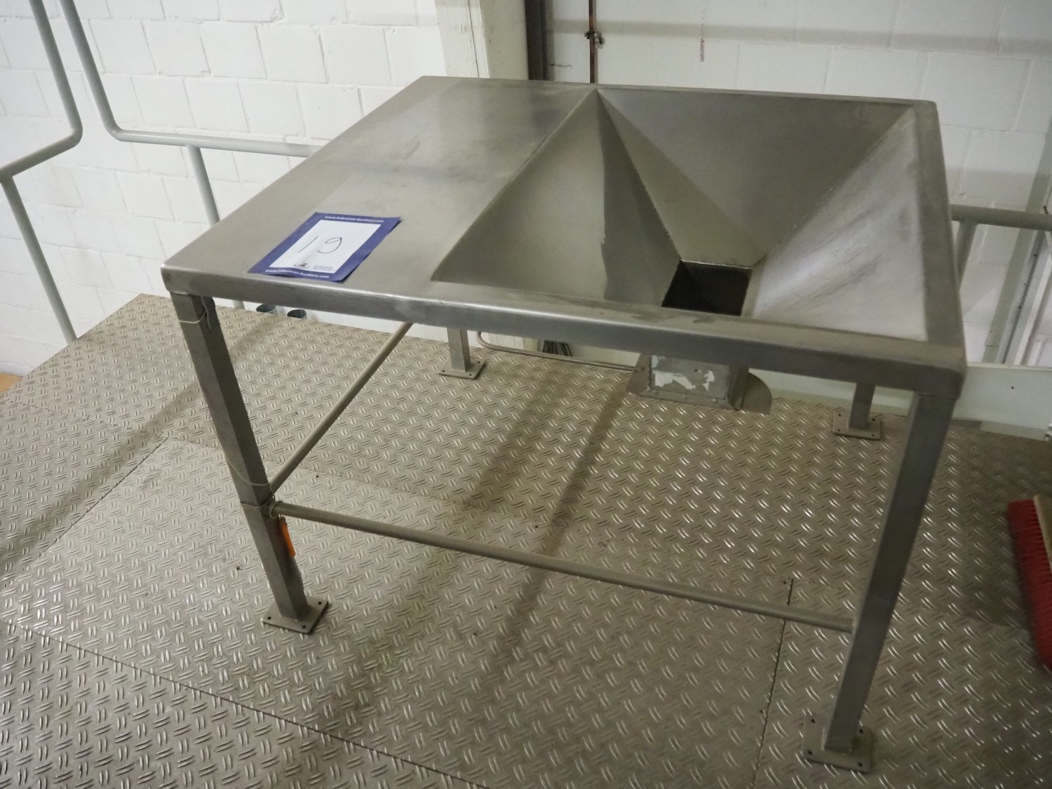 S/s infeed table, dimensions: 900 mm x 1050 mm x 800 mm.
