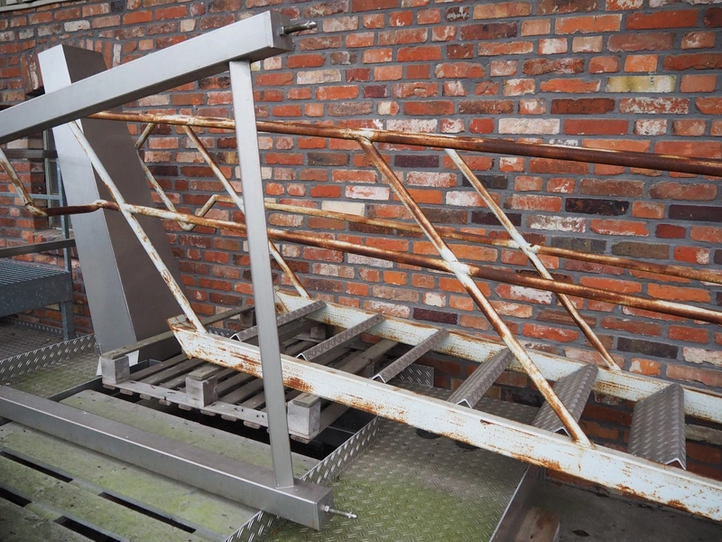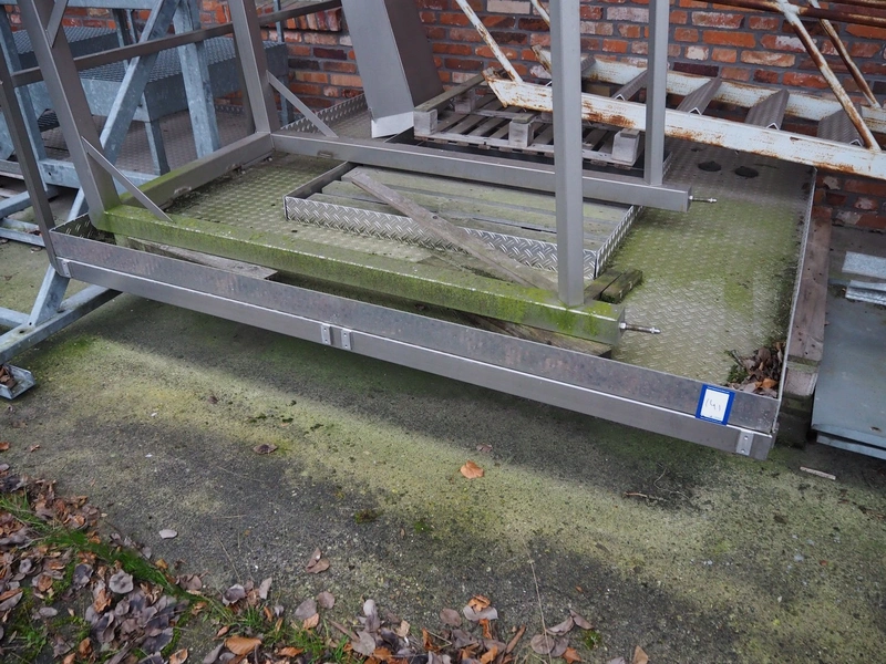 S/s platform with stairs used for multihead weigher, dimensions: 2400 mm x 2450 mm x 1200 mm, 4500 mm x 800 mm x 1000 mm.