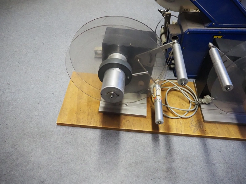 Wooden plate with label unwinders, dimensions: 950 mm x 300 mm x 450 mm.