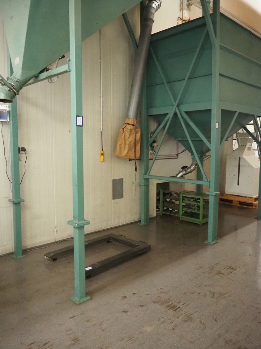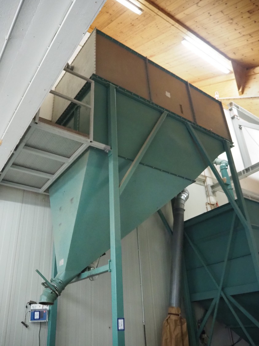 Steel silo, volume: approx. 6 m³, dimensions: 1700 mm x 3000 mm x 6000 mm.