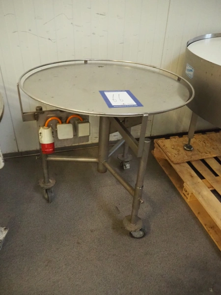 Mobile turning table, s/s frame, s/s top, diameter top: 800 mm, total dimensions: ø 860 mm x 850 mm.