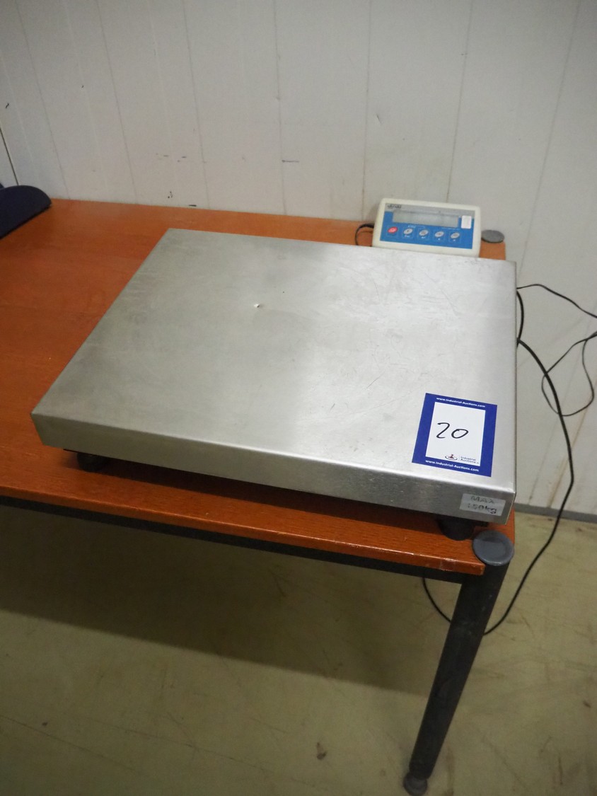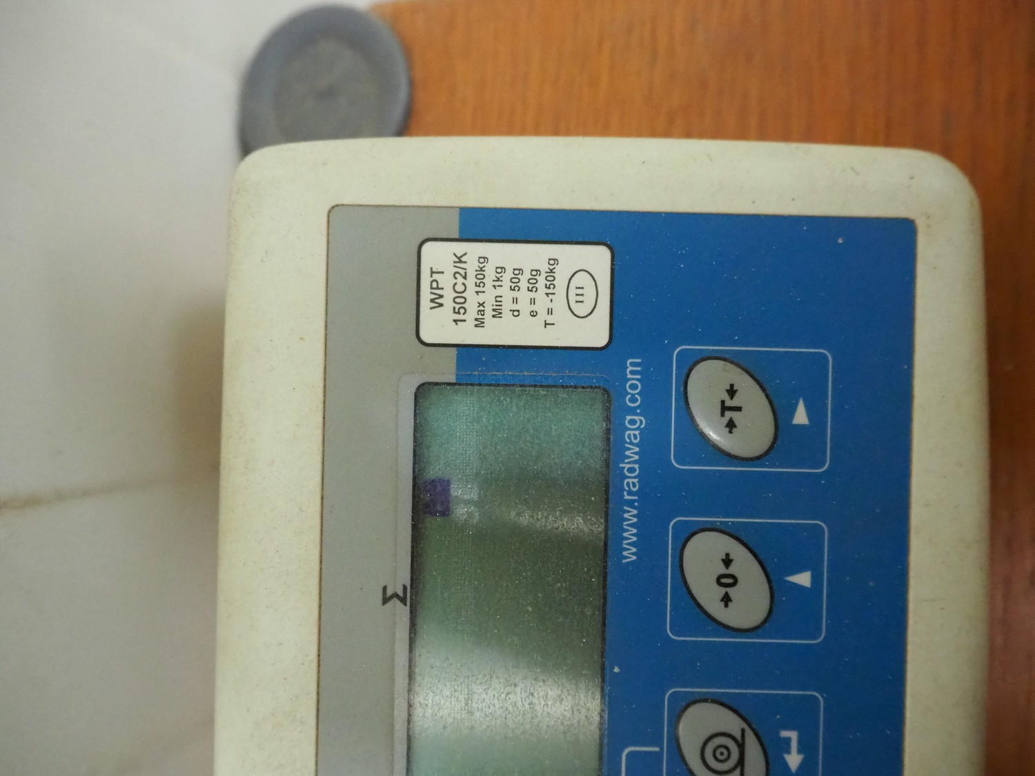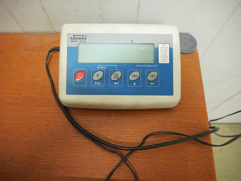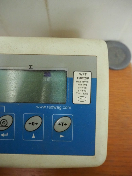 Radwag weighing scale, type indicator: WPT/150C2/K, weighing range: 1-150 kg, d=50g, e=50g, T=-150kg, dimensions scale: 400 mm x 500 mm x 100 mm.