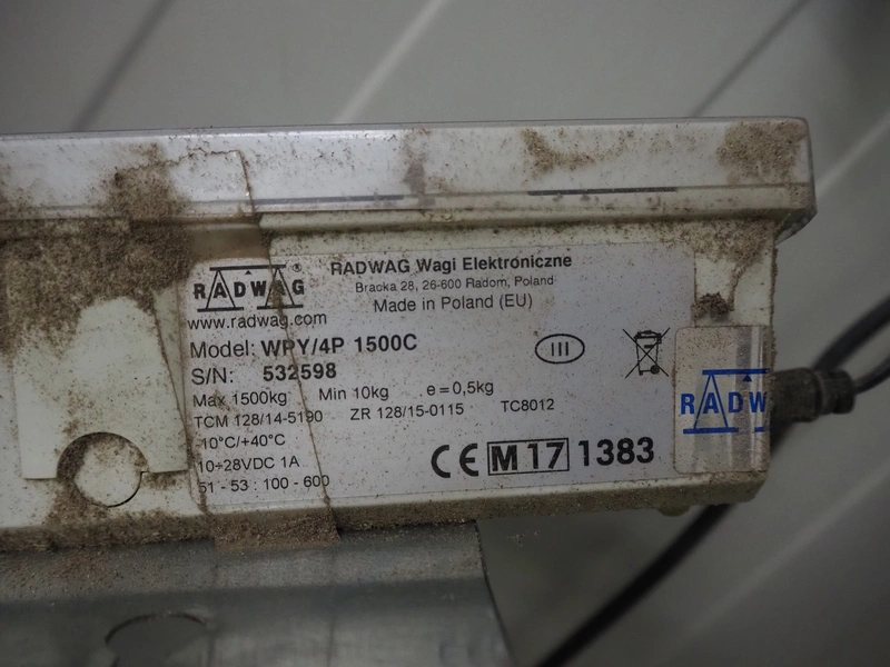 Radwag weighing scale for pallets, model: WPY/4P 1500C, serial number: 532598, year of construction: 2017, weighing range: 10-1500kg, e=0.5kg, dimensions: 1300 mm x 850 mm x 1000 mm.