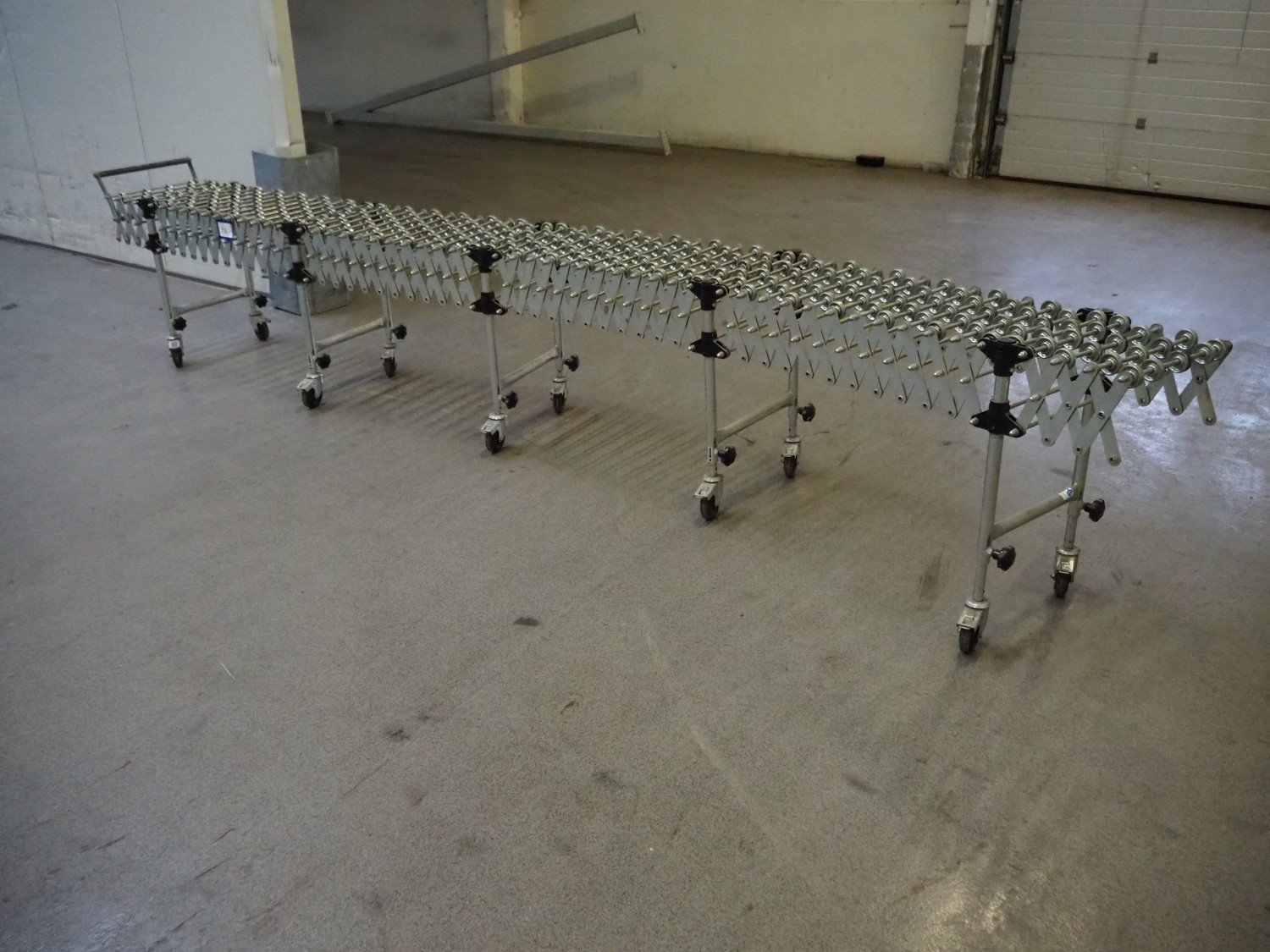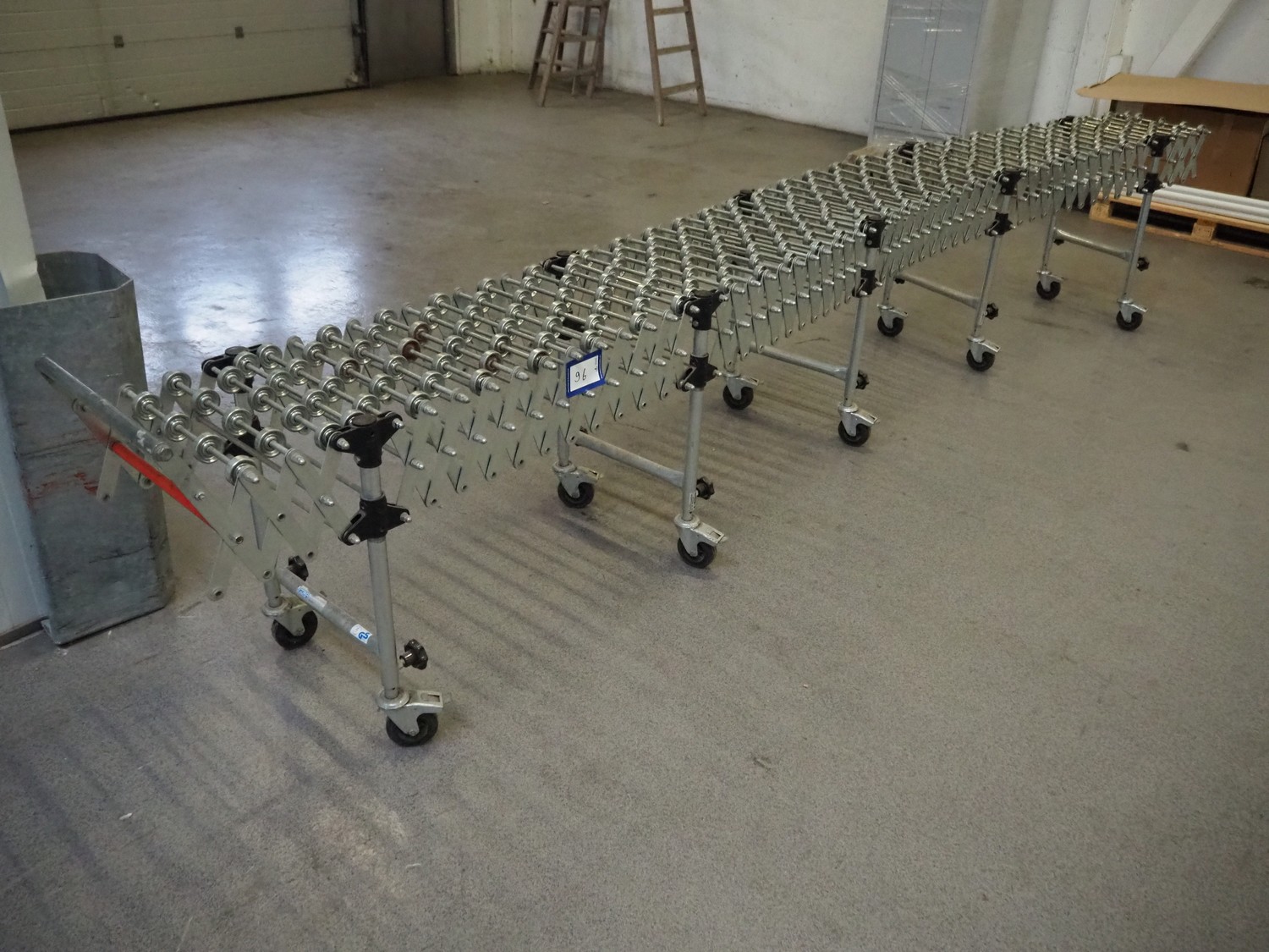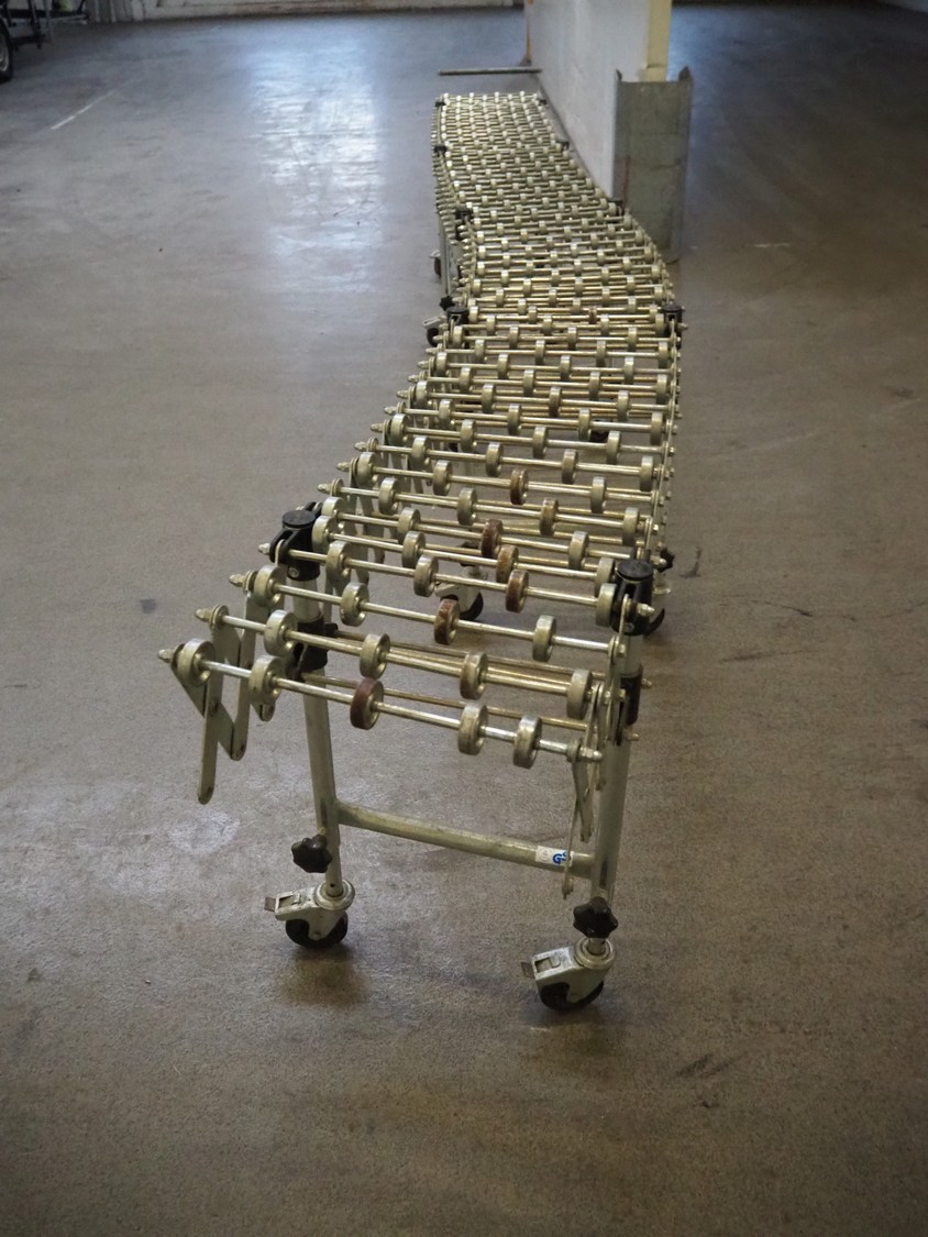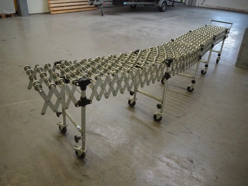 Gura mobile extendable roller conveyor, total roller width: 400 mm, total dimensions: 4150 mm x 500 mm x 800 mm.