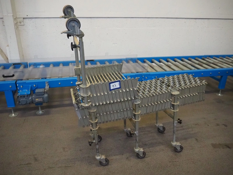Mobile extendable roller conveyor, total roller width: 300 mm, total dimensions: 1350 mm x 450 mm x 750 mm.