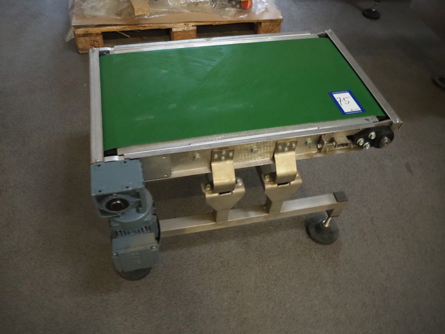 Transport belt, plastic belt, belt width: 400 mm, total dimensions: 870 mm x 650 mm x 550 mm.
