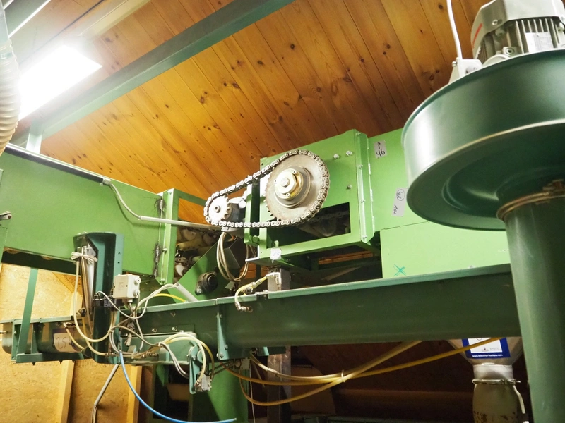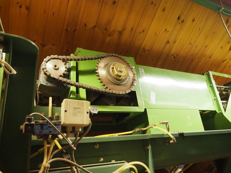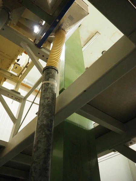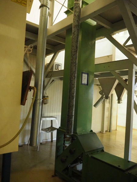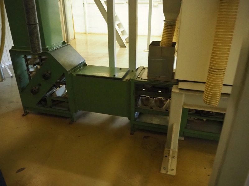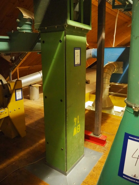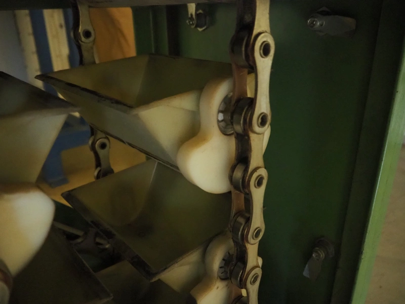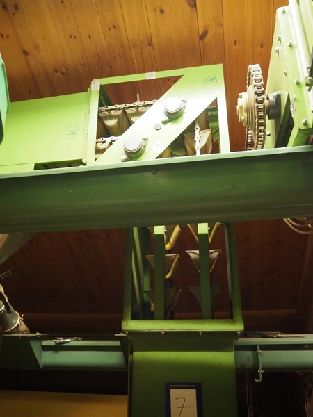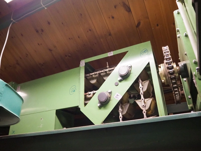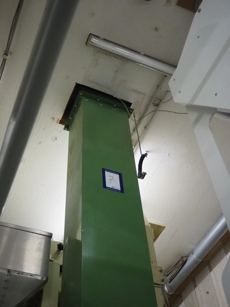 Humbert&Pohl elevating conveyor, dimensions baskets: 140 mm x 210 mm x 100 mm, elevating height: 6280 mm, capacity with wheat flower: 3000 kg per hour, total dimensions: 2700 mm x 400 mm x 7700 mm.