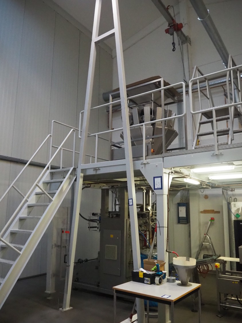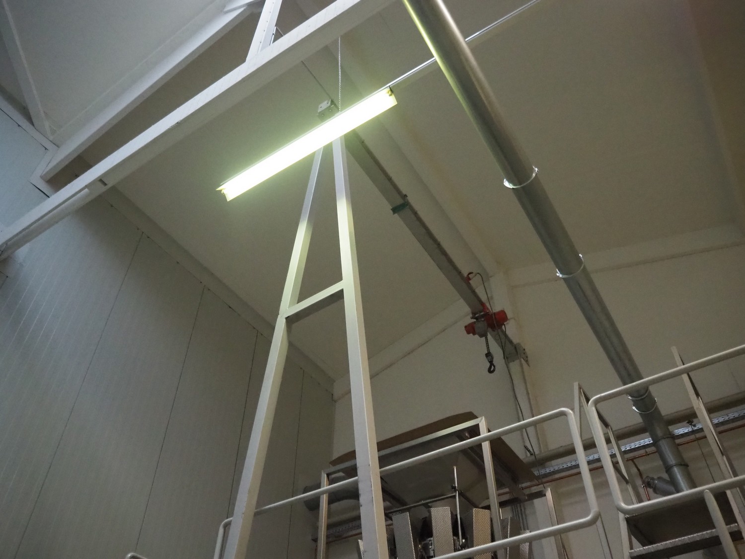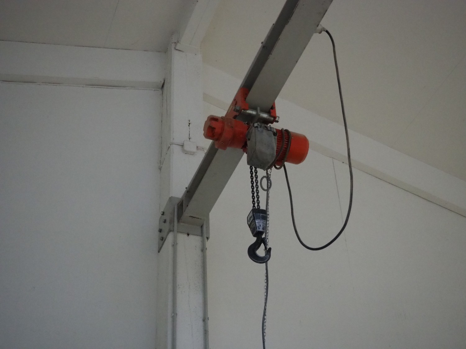 Steel frame with electric chain hoist, dimensions frame: 4300 mm x 1600 mm x 7200 mm.