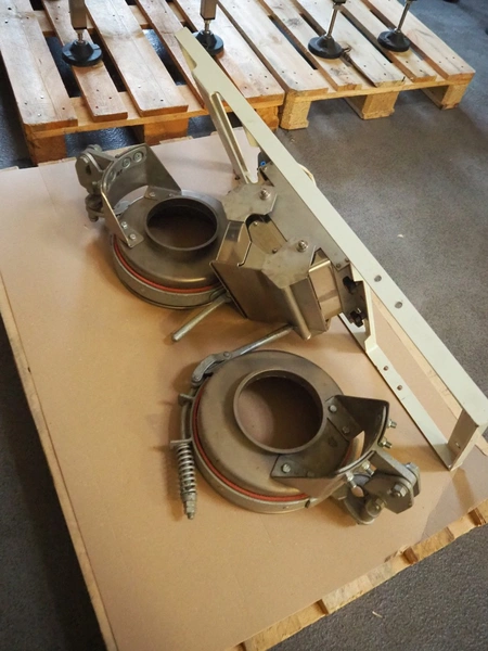 Pallet with parts, among others collection flap for Yamato scale and two sack clamps.