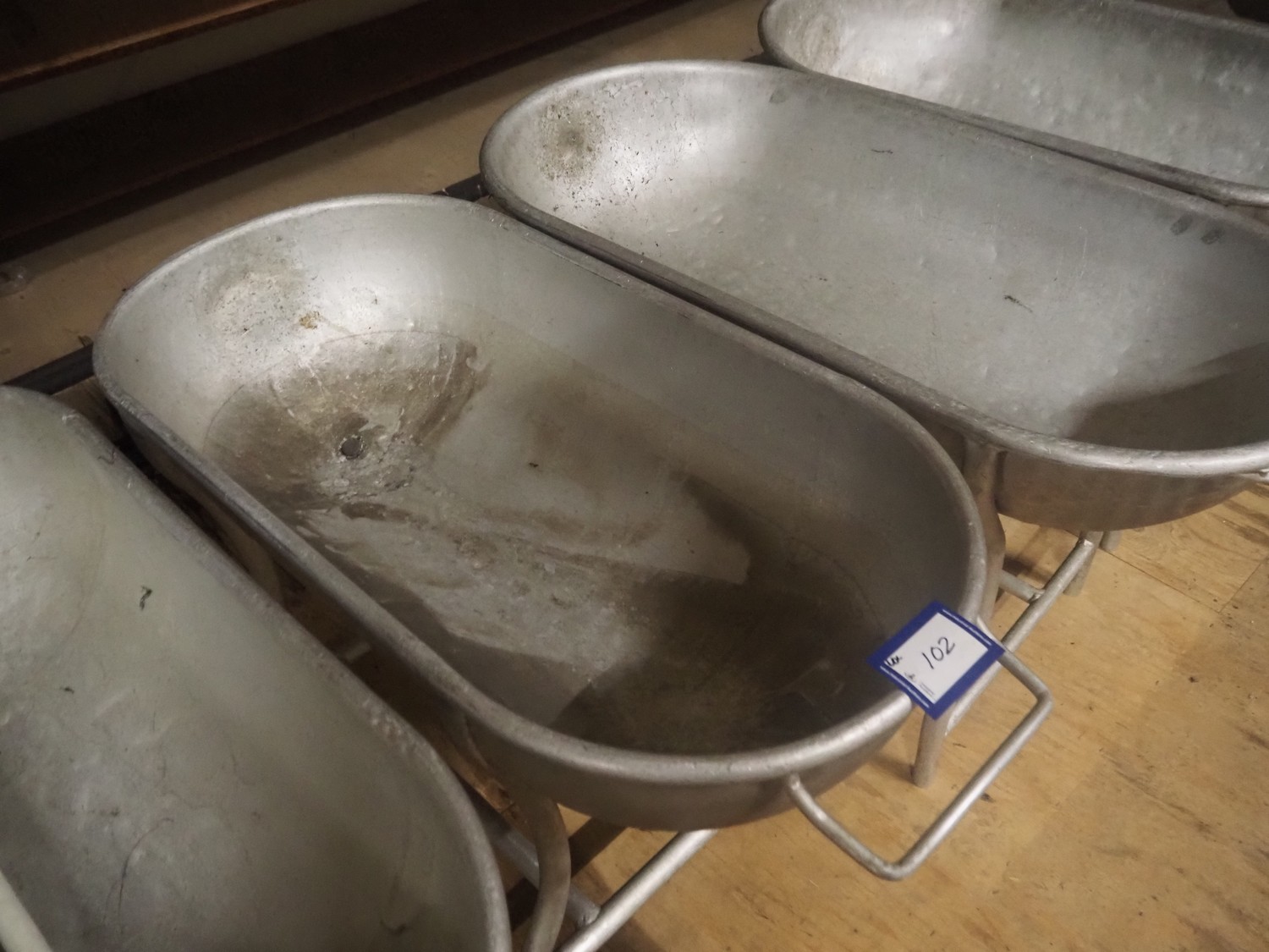 4 aluminium tubs, dimensions: (4x) 1400 mm x 670 mm x 800 mm.