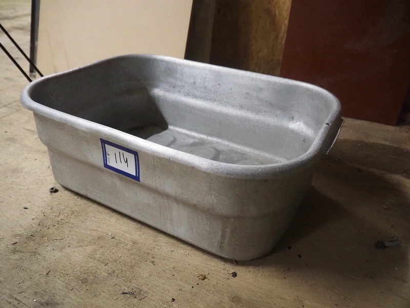 Aluminium tub, dimensions: 750 mm x 520 mm x 250 mm.