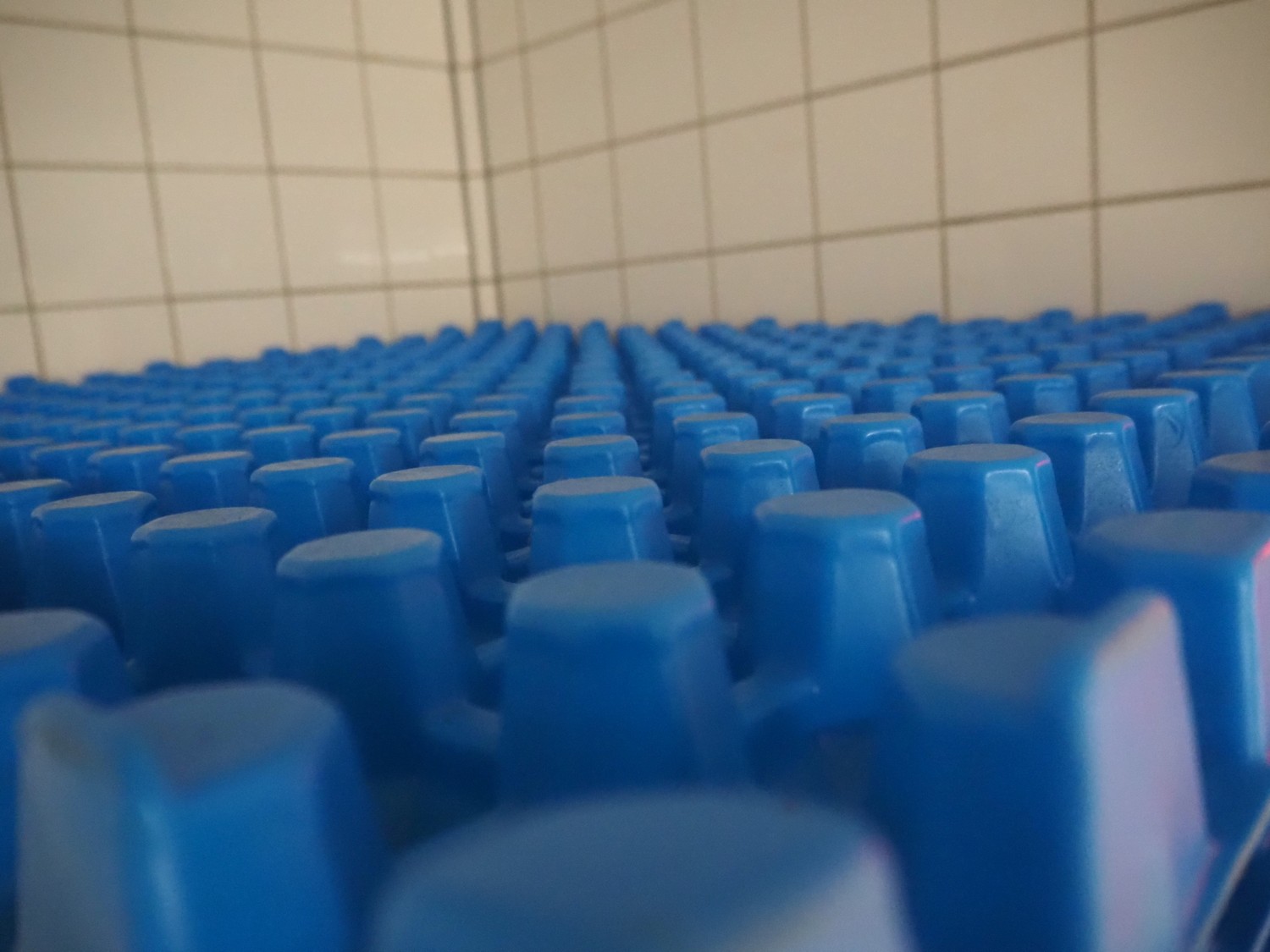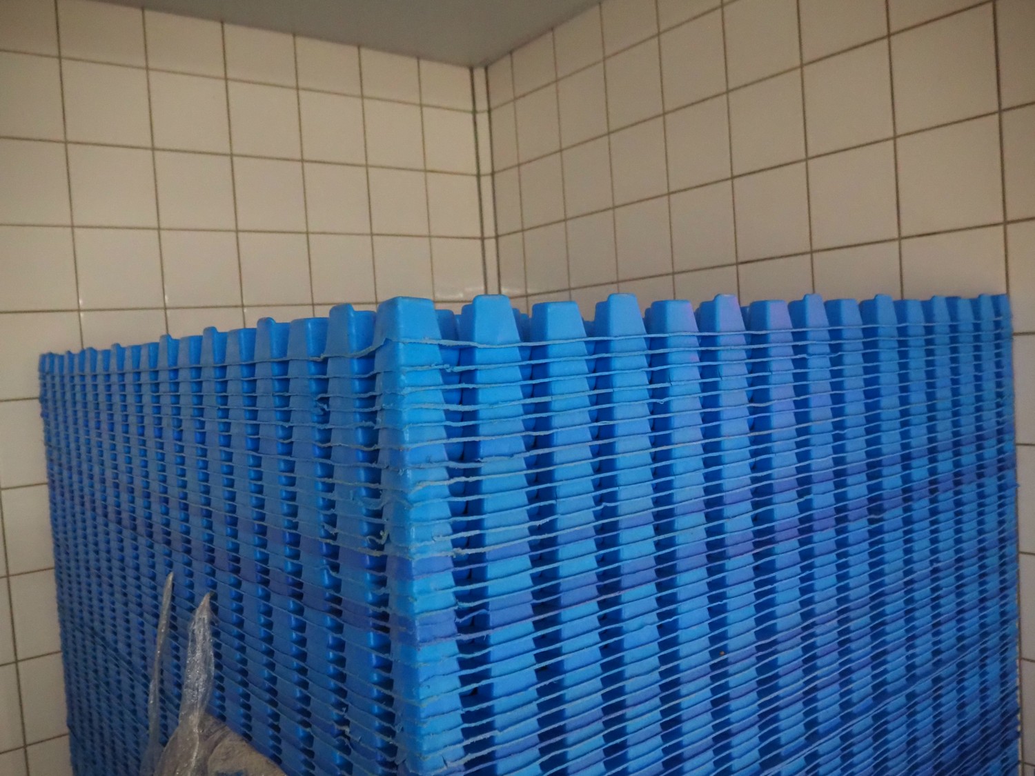 Plastic pallet with large amount of plastic spacers, dimensions each spacer: 1000 mm x 1170 mm.