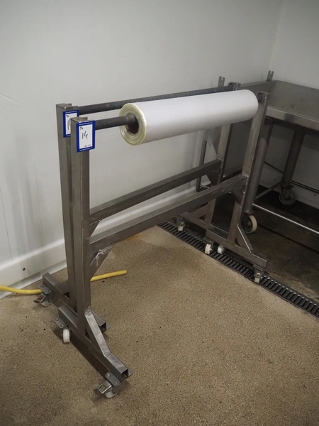 2 mobile s/s frames for film reels, dimensions: (2x) 1300 mm x 500 mm x 1200 mm.