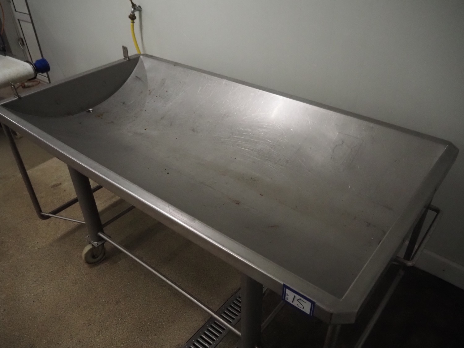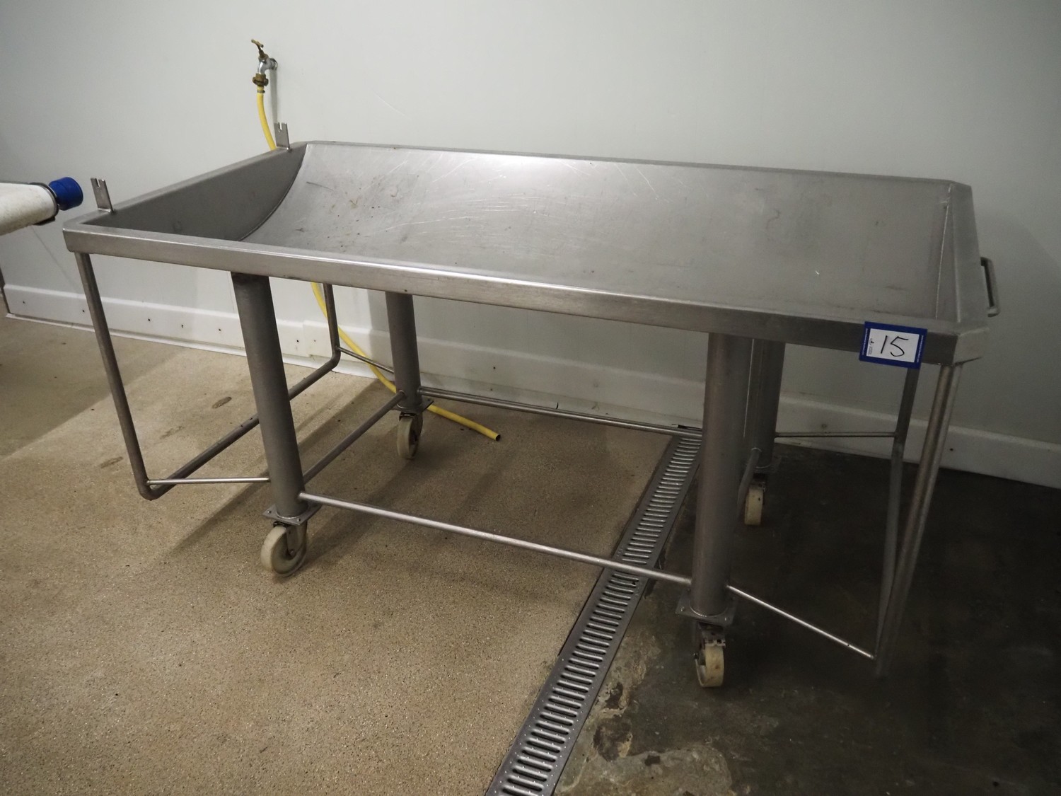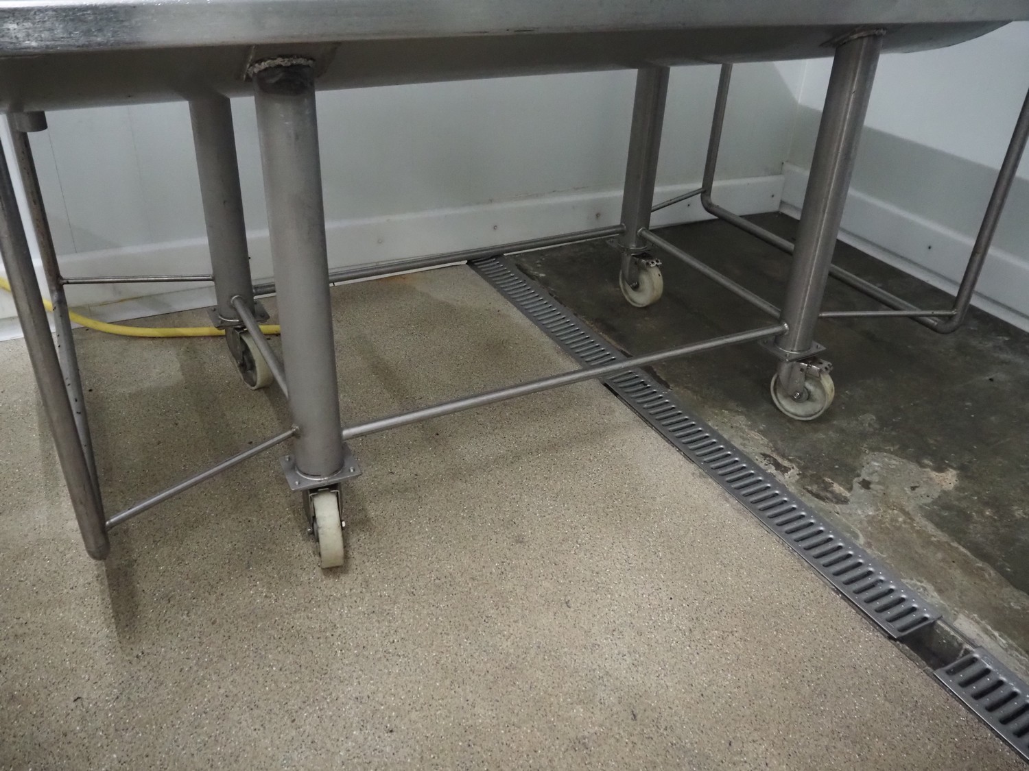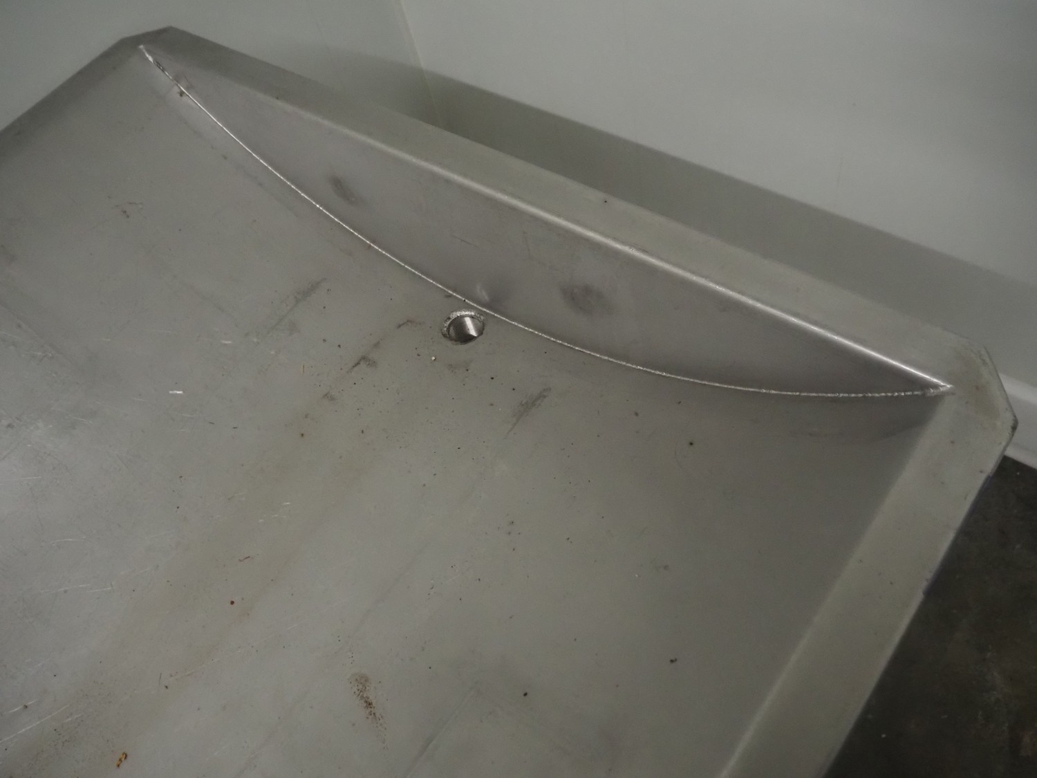 Mobile s/s tub with drain, dimensions: 2150 mm x 1100 mm x 1050 mm.